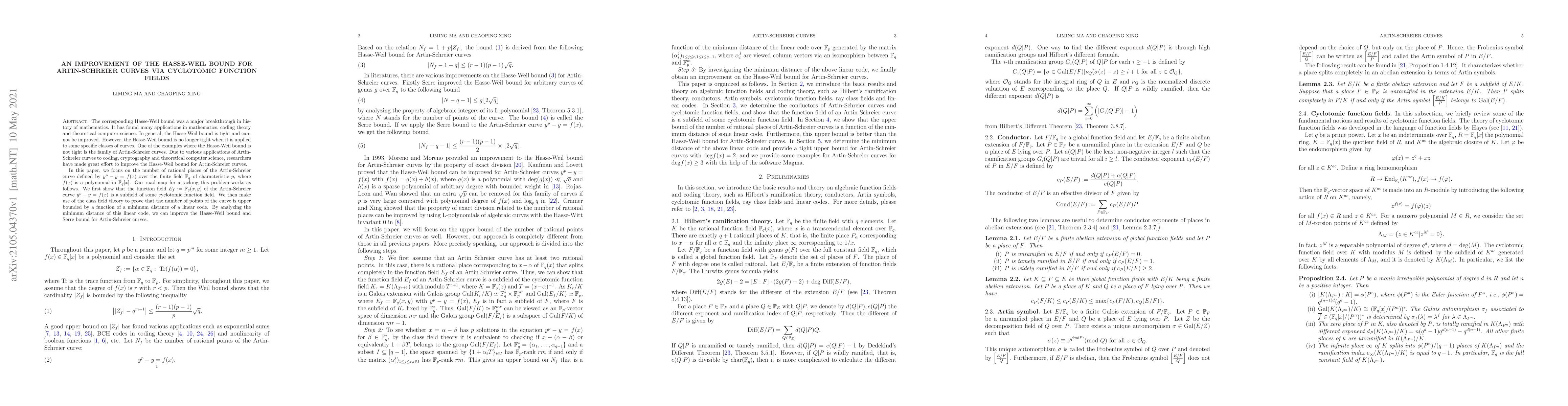 This paper presents an improvement to the Hasse-Weil bound for Artin-Schreier curves by showing that their function field is a subfield of a cyclotomic function field and using class field theory to derive a tighter upper bound on the number of rational points based on the minimum distance of a linear code.