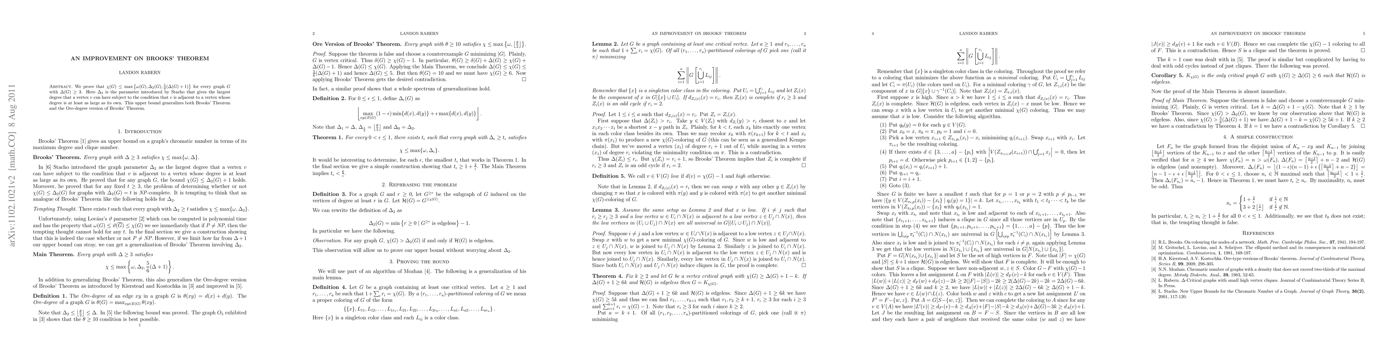 This paper improves upon Brooks' Theorem by providing a new upper bound for the chromatic number of a graph, $\chi(G)$, which is shown to be $\max {\omega(G), \Delta_2(G), (5/6)(\Delta(G) + 1)}$ for any graph $G$ with maximum degree $\Delta(G) \geq 3$. This new bound generalizes both Brooks' original theorem and its Ore-degree version.