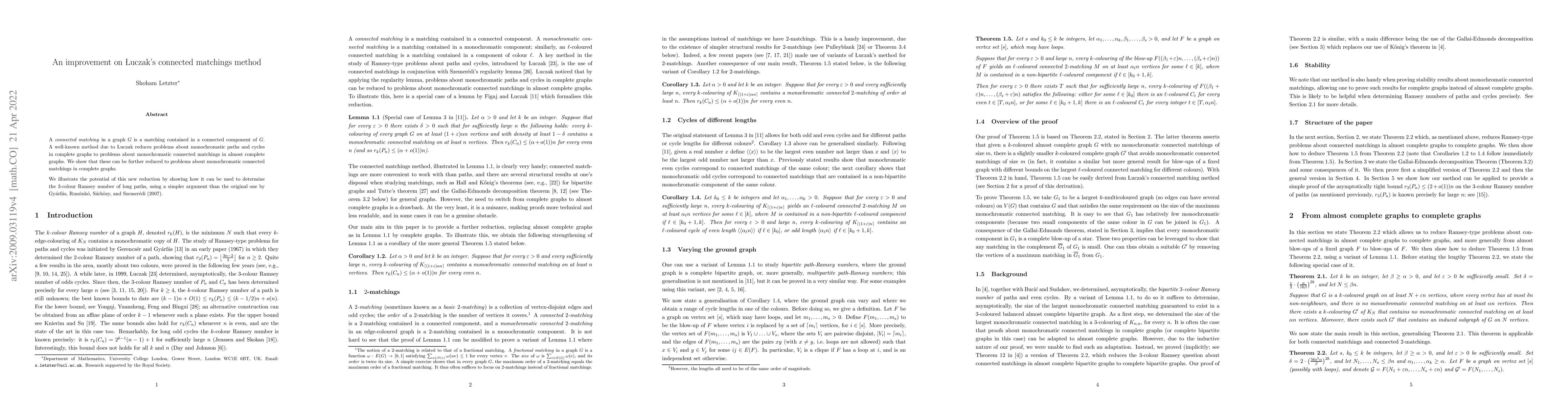 This paper improves {\L}uczak's method for reducing problems about monochromatic paths and cycles in complete graphs to monochromatic connected matchings in almost complete graphs, further simplifying it to complete graphs. The new method is demonstrated by determining the 3-colour Ramsey number of long paths with a simpler argument.