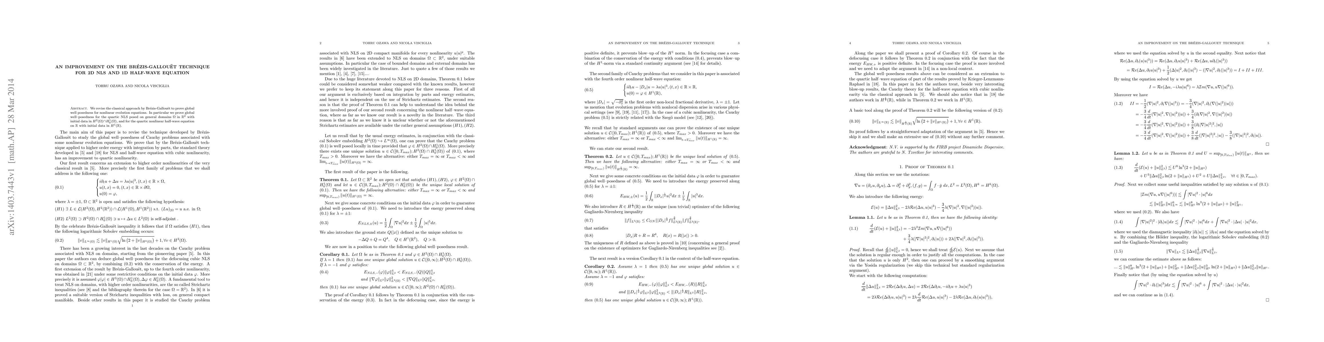 We revise the classical approach by Br\'ezis-Gallou\"et to prove global well posedness for nonlinear evolution equations. In particular we prove global well--posedness for the quartic NLS posed on general domains $\Omega$ in $\R^2$ with initial data in $H^2(\Omega)\cap H^1_0(\Omega)$, and for the quartic nonlinear half-wave equation on $\R$ with initial data in $H^1(\R)$.
