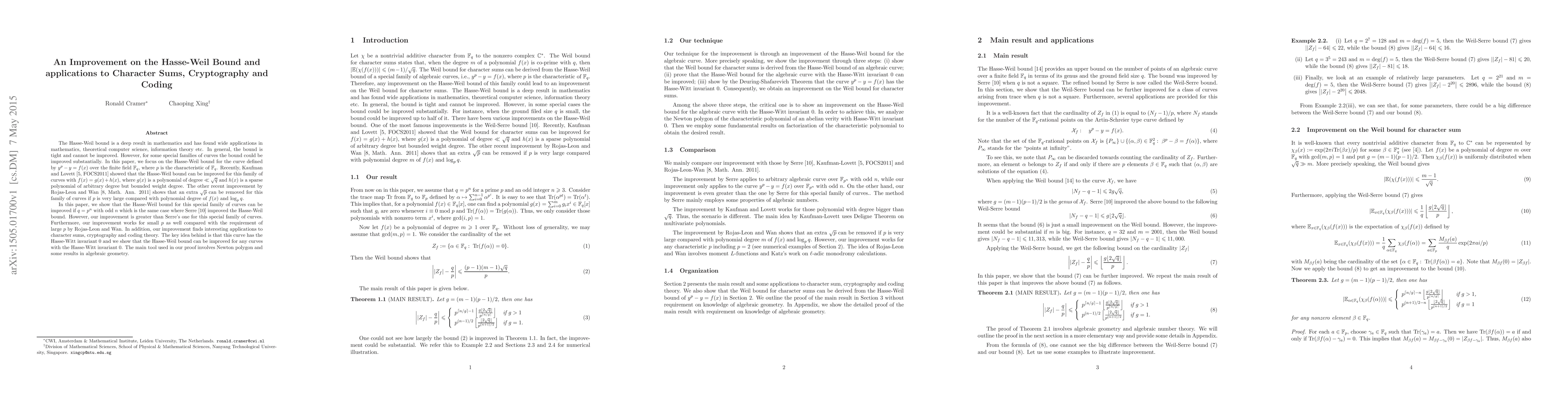 The Hasse-Weil bound is a deep result in mathematics and has found wide applications in mathematics, theoretical computer science, information theory etc. In general, the bound is tight and cannot be improved. However, for some special families of curves the bound could be improved substantially. In this paper, we focus on the Hasse-Weil bound for the curve defined by $y^p-y=f(x)$ over the finite field $\F_q$, where $p$ is the characteristic of $\F_q$. Recently, Kaufman and Lovett \cite[FOCS2011]{KL11} showed that the Hasse-Weil bound can be improved for this family of curves with $f(x)=g(x)+h(x)$, where $g(x)$ is a polynomial of degree $\ll \sqrt{q}$ and $h(x)$ is a sparse polynomial of arbitrary degree but bounded weight degree. The other recent improvement by Rojas-Leon and Wan \cite[Math. Ann. 2011]{RW11} shows that an extra $\sqrt{p}$ can be removed for this family of curves if $p$ is very large compared with polynomial degree of $f(x)$ and $\log_pq$. In this paper, we show that the Hasse-Weil bound for this special family of curves can be improved if $q=p^n$ with odd $n$ which is the same case where Serre \cite{Se85} improved the Hasse-Weil bound. However, our improvement is greater than Serre's one for this special family of curves. Furthermore, our improvement works for small $p$ as well compared with the requirement of large $p$ by Rojas-Leon and Wan. In addition, our improvement finds interesting applications to character sums, cryptography and coding theory. The key idea behind is that this curve has the Hasse-Witt invariant $0$ and we show that the Hasse-Weil bound can be improved for any curves with the Hasse-Witt invariant $0$. The main tool used in our proof involves Newton polygon and some results in algebraic geometry.