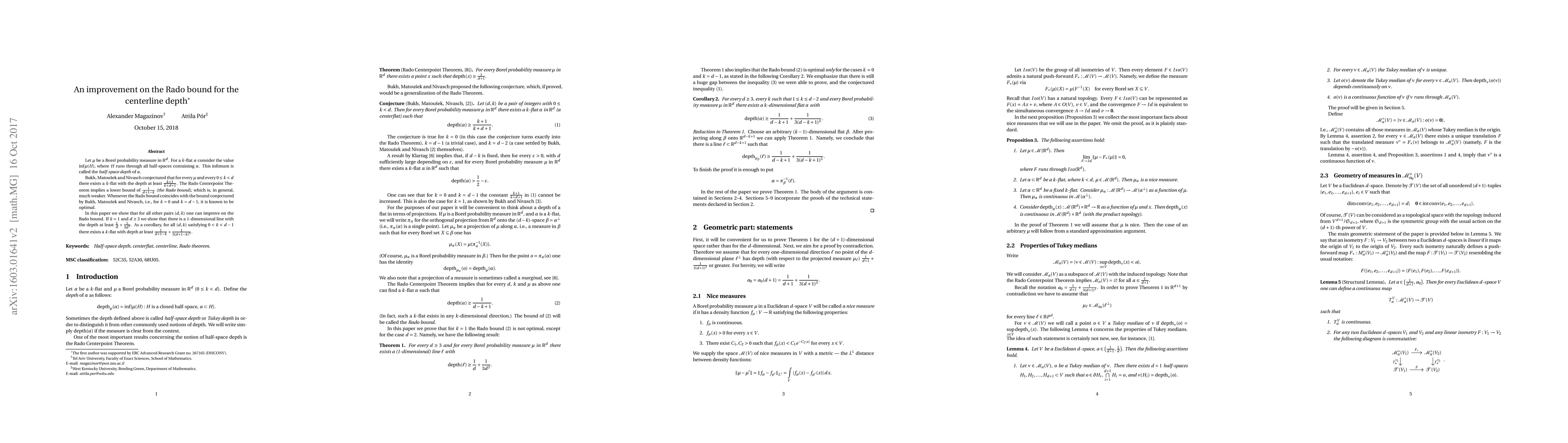 Researchers improved upon a mathematical bound for the minimum depth of a line in d-dimensional space, showing that it can be at least 1/d + 1/(3d^3) for lines and d >= 3, improving an existing weaker bound.