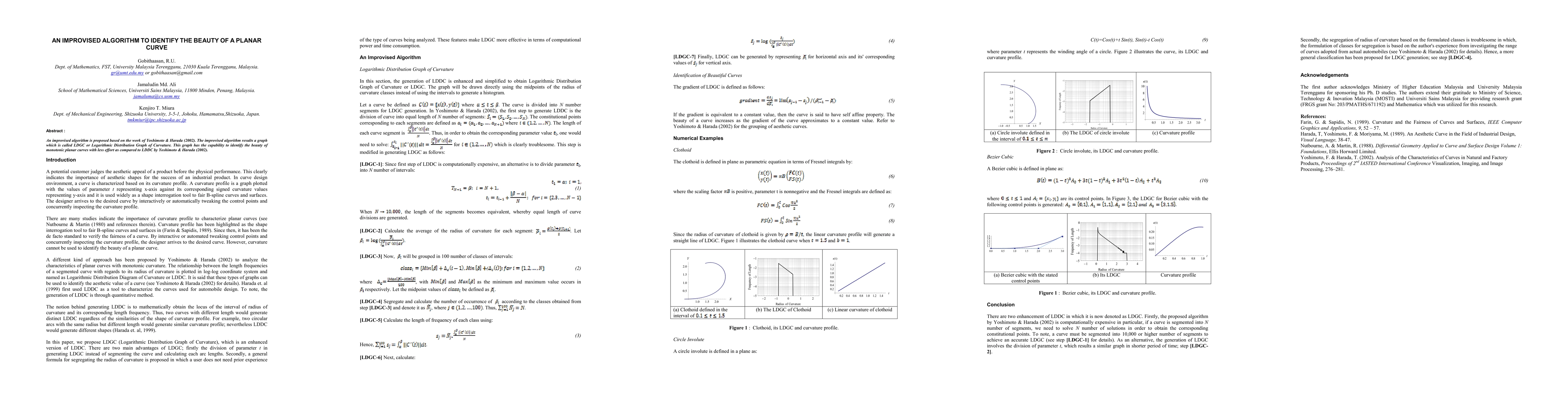 An improvised algorithm is proposed based on the work of Yoshimoto and Harada. The improvised algorithm results a graph which is called LDGC or Logarithmic Distribution Graph of Curvature. This graph has the capability to identify the beauty of monotonic planar curves with less effort as compared to LDDC by Yoshimoto and Harada.