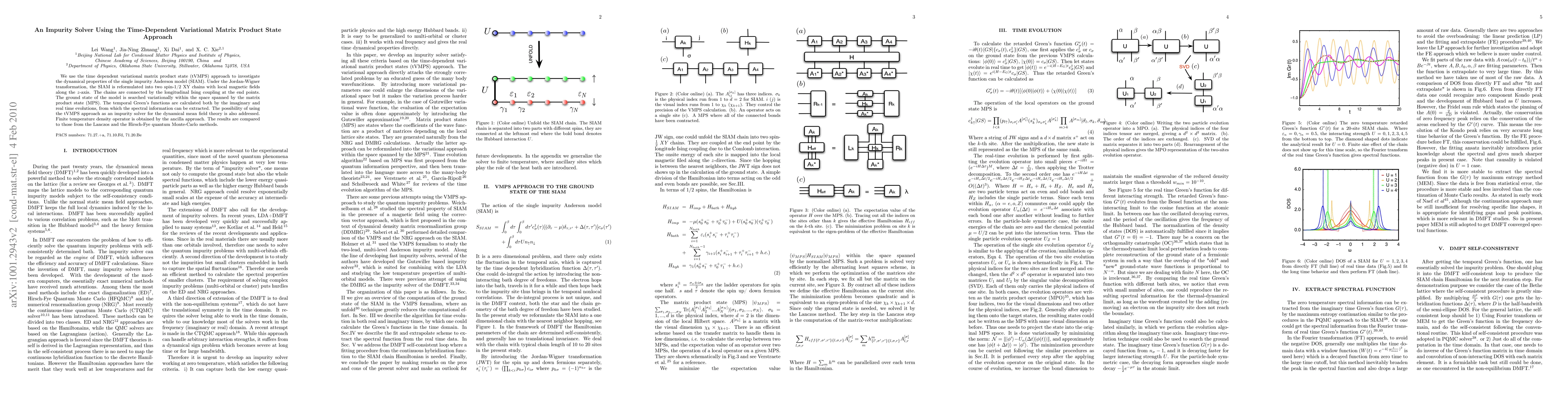 This paper investigates the dynamical properties of the single impurity Anderson model using the time-dependent variational matrix product state (tVMPS) approach, reformulating it into two spin-1/2 XY chains and exploring its spectral information through temporal Green's functions. It also considers the potential of tVMPS as an impurity solver for dynamical mean field theory and compares results with established quantum Monte-Carlo methods.
