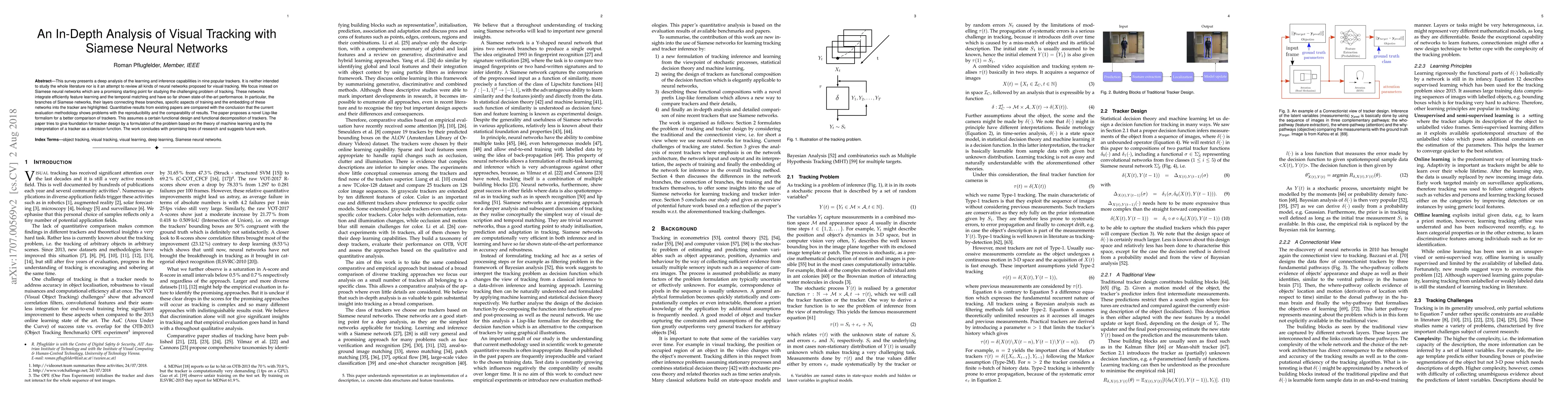 This survey presents a deep analysis of the learning and inference capabilities in nine popular trackers. It is neither intended to study the whole literature nor is it an attempt to review all kinds of neural networks proposed for visual tracking. We focus instead on Siamese neural networks which are a promising starting point for studying the challenging problem of tracking. These networks integrate efficiently feature learning and the temporal matching and have so far shown state-of-the-art performance. In particular, the branches of Siamese networks, their layers connecting these branches, specific aspects of training and the embedding of these networks into the tracker are highlighted. Quantitative results from existing papers are compared with the conclusion that the current evaluation methodology shows problems with the reproducibility and the comparability of results. The paper proposes a novel Lisp-like formalism for a better comparison of trackers. This assumes a certain functional design and functional decomposition of trackers. The paper tries to give foundation for tracker design by a formulation of the problem based on the theory of machine learning and by the interpretation of a tracker as a decision function. The work concludes with promising lines of research and suggests future work.