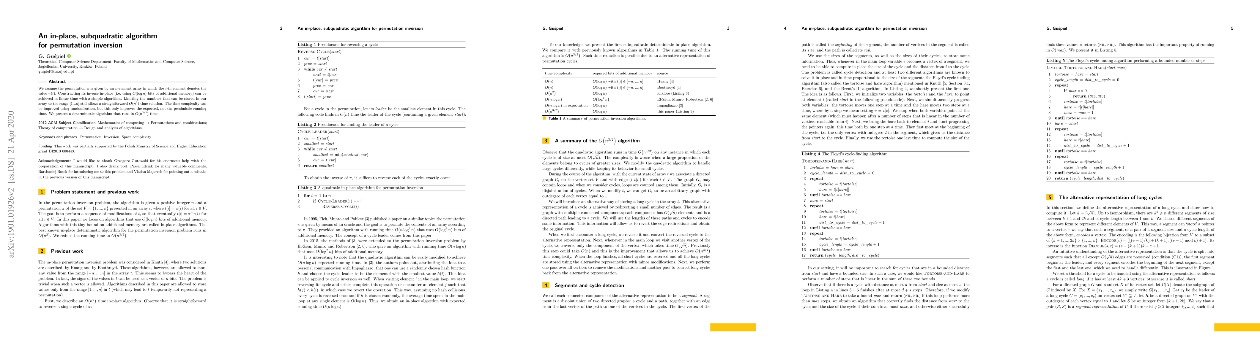 A new algorithm can create a permutation inversion in-place with $O(rac{3}{2}n^2)$ time complexity, improving upon previous methods.