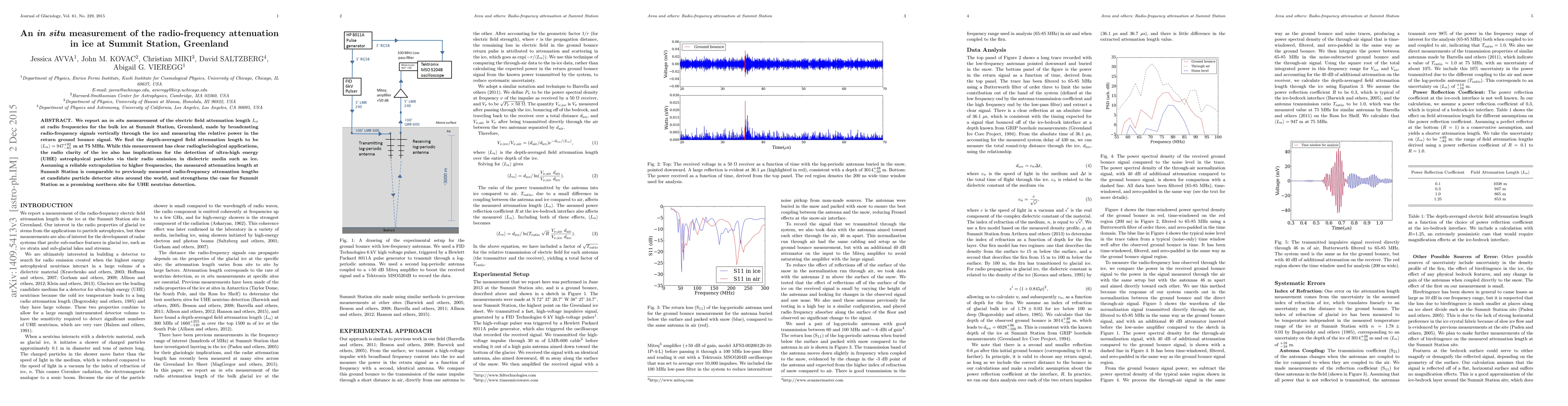 This study measures the radio-frequency attenuation in Greenland ice at Summit Station, finding a depth-averaged attenuation length of 947 ± 92/-85 meters at 75 MHz. The results support the station's potential as a site for detecting ultra-high energy astrophysical neutrinos via radio signals.
