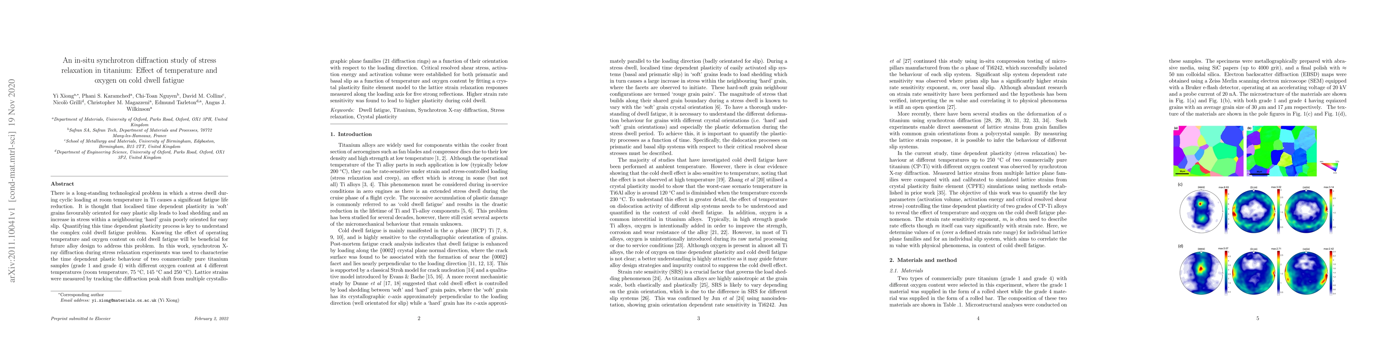 This study investigates the stress relaxation and time-dependent plasticity in titanium under cyclic loading using synchrotron diffraction, focusing on the effects of temperature and oxygen content. Findings reveal that higher strain rate sensitivity correlates with increased plasticity during cold dwell fatigue, providing insights for future alloy design.
