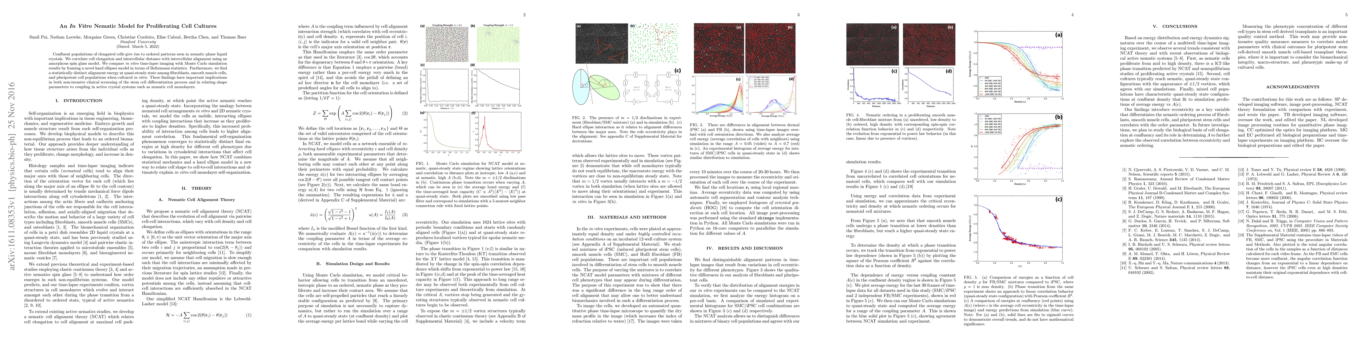 Researchers created an in vitro model of nematic cells using cell culture techniques, finding alignment energy patterns among different cell types and implications for non-invasive stem cell screening and relating shape to coupling in active crystal systems.