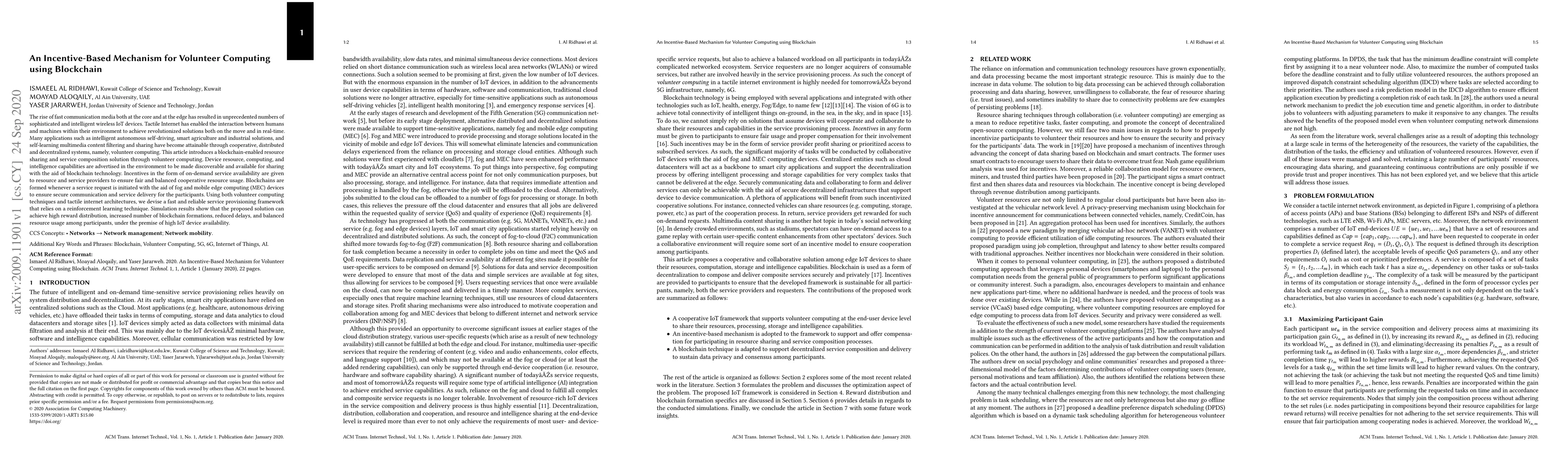This paper proposes a blockchain-based incentive mechanism for volunteer computing in IoT environments, leveraging tactile internet and edge computing to enable efficient resource sharing and service composition. The approach ensures balanced resource usage and high reward distribution through reinforcement learning, resulting in reduced delays and increased blockchain formations.