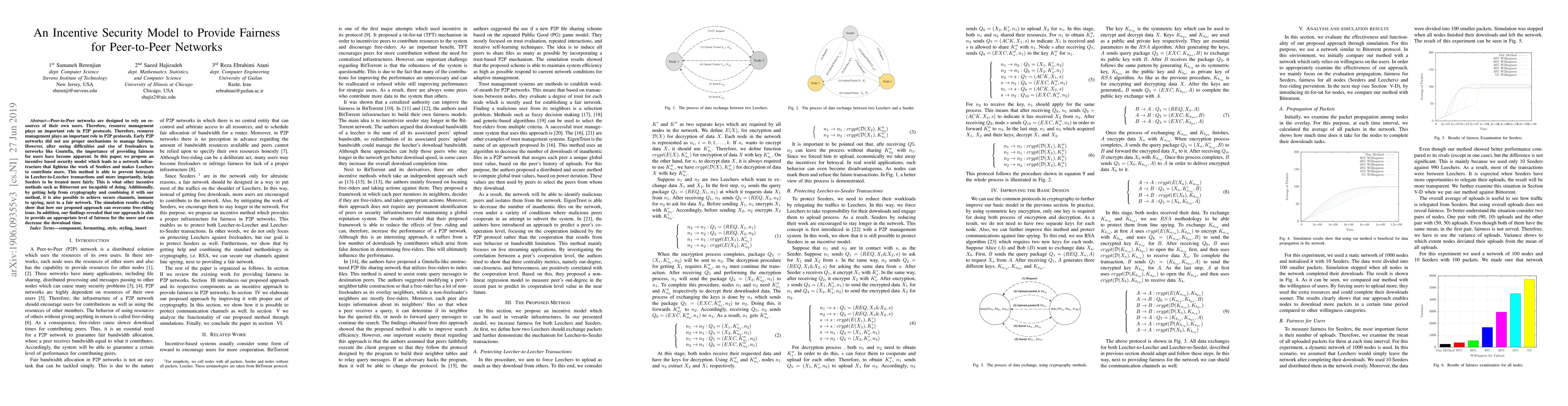The paper proposes an incentive security model to ensure fairness in Peer-to-Peer networks, addressing issues like freeloading and unequal contribution. Simulation results demonstrate the model's effectiveness in reducing free-riding, enhancing seeder fairness, and decreasing download times, with potential for secure channels via cryptography integration.
