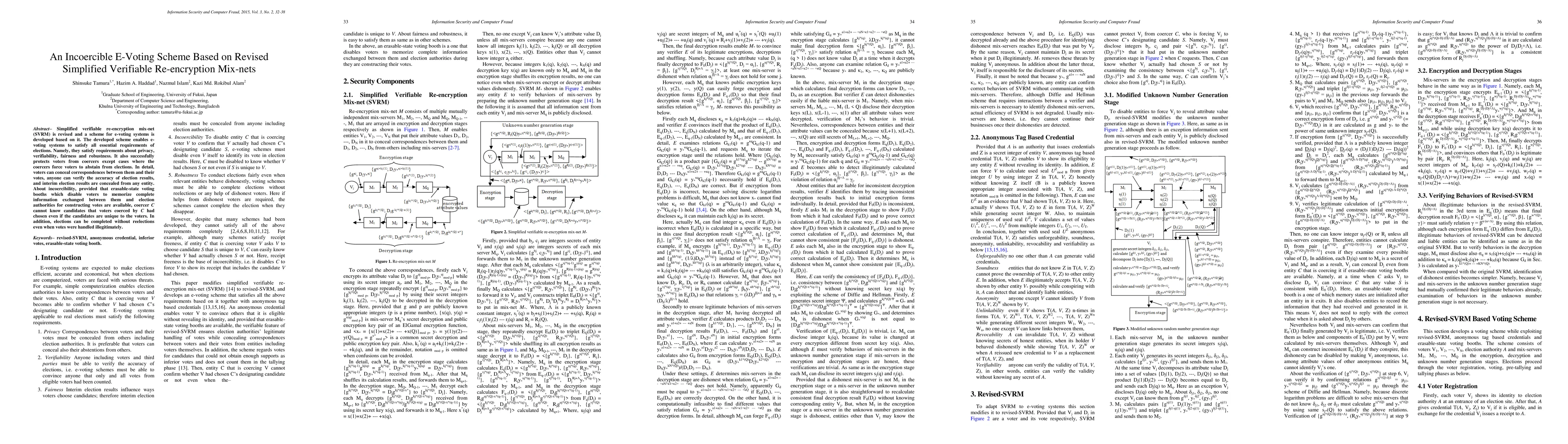 Simplified verifiable re-encryption mix-net (SVRM) is revised and a scheme for e-voting systems is developed based on it. The developed scheme enables e-voting systems to satisfy all essential requirements of elections. Namely, they satisfy requirements about privacy, verifiability, fairness and robustness. It also successfully protects voters from coercers except cases where the coercers force voters to abstain from elections. In detail, voters can conceal correspondences between them and their votes, anyone can verify the accuracy of election results, and interim election results are concealed from any entity. About incoercibility, provided that erasable-state voting booths which disable voters to memorize complete information exchanged between them and election authorities for constructing votes are available, coercer C cannot know candidates that voters coerced by C had chosen even if the candidates are unique to the voters. In addition, elections can be completed without reelections even when votes were handled illegitimately.