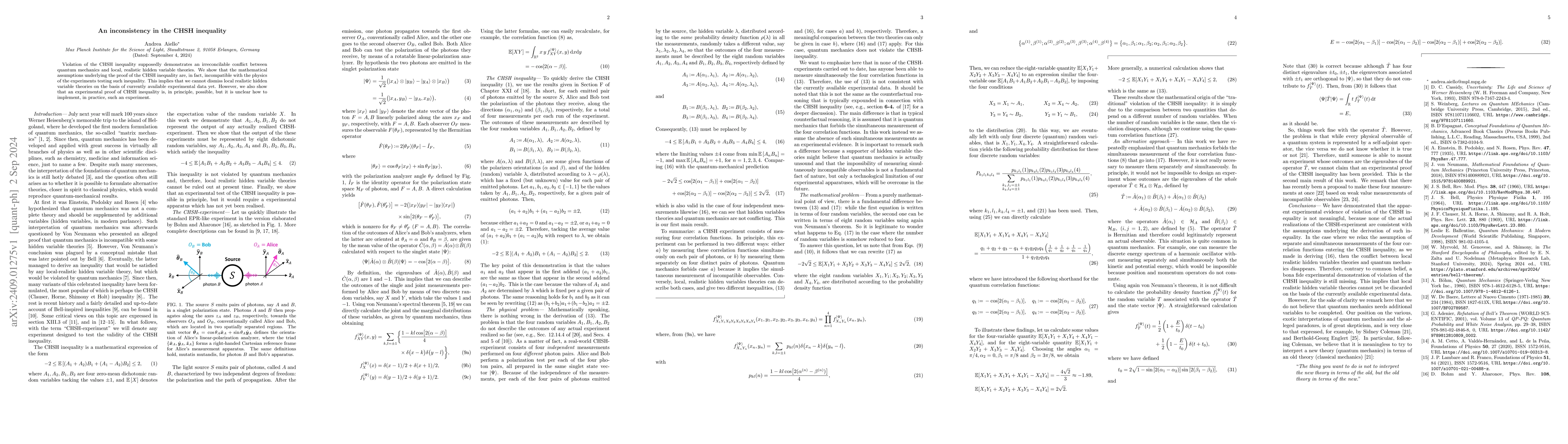 The CHSH inequality's mathematical assumptions are incompatible with experimental physics, suggesting that local realistic hidden variable theories cannot yet be dismissed. An experimental proof of the CHSH inequality is theoretically possible but remains impractically challenging to implement.