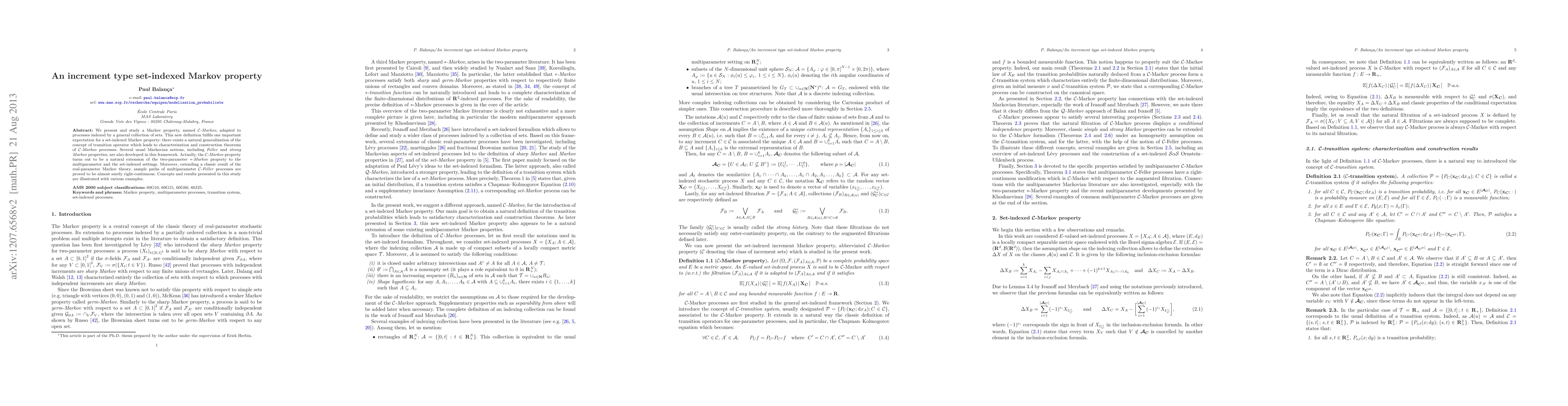 This paper introduces and explores a set-indexed Markov property called C-Markov, providing a natural generalization of the transition operator and extending the two-parameter \ast-Markov property to the multiparameter and set-indexed settings. It also proves that sample paths of multiparameter C-Feller processes are almost surely right-continuous.