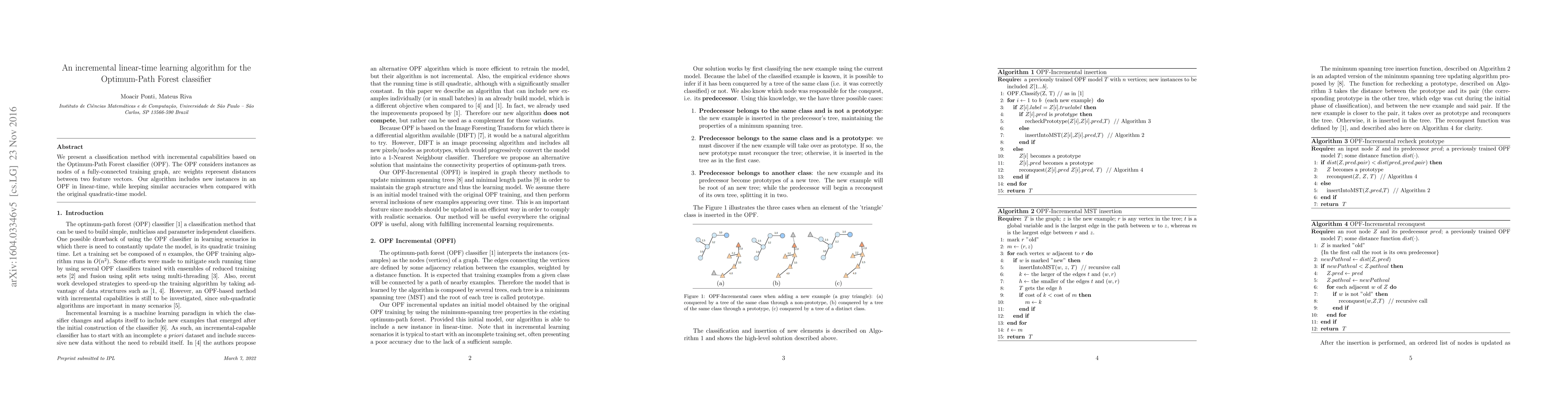 Researchers developed an incremental linear-time learning algorithm for the Optimum-Path Forest classifier, enabling efficient addition of new instances while maintaining similar accuracy.