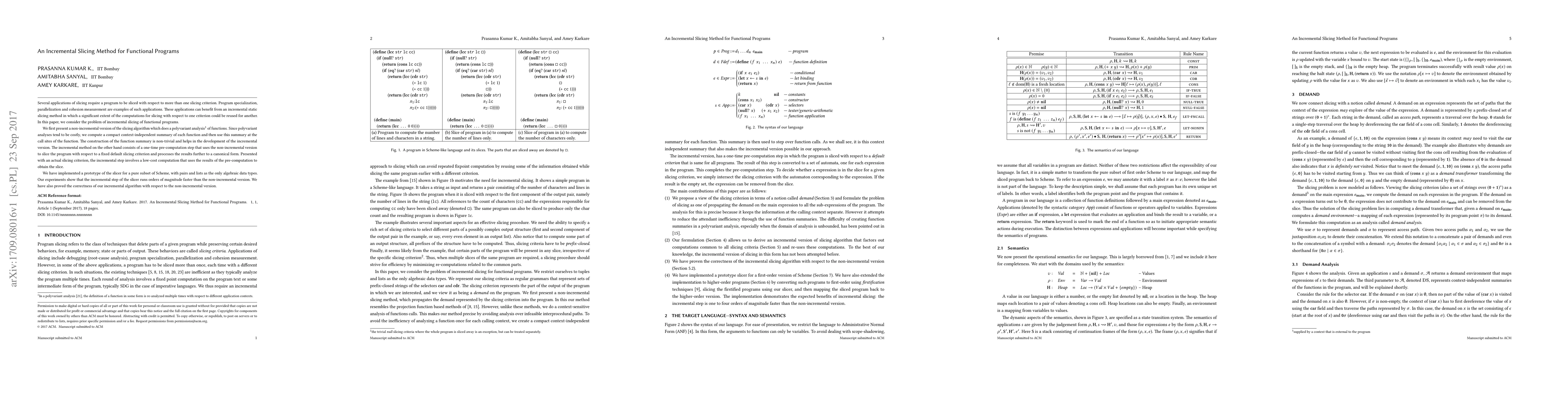 This paper proposes an incremental slicing method for functional programs that reuses computations from a pre-computed non-incremental slice to efficiently generate slices for multiple criteria. The method involves a costly initial computation followed by low-cost incremental steps, significantly improving performance over the non-incremental version.