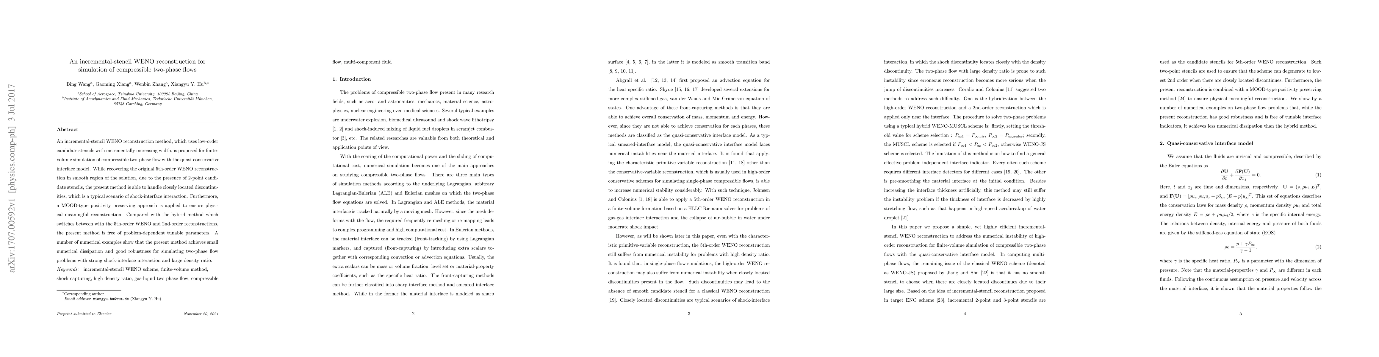 An incremental-stencil WENO reconstruction method, which uses low-order candidate stencils with incrementally increasing width, is proposed for finite-volume simulation of compressible two-phase flow with the quasi-conservative interface model. While recovering the original 5th-order WENO reconstruction in smooth region of the solution, due to the presence of 2-point candidate stencils, the present method is able to handle closely located discontinuities, which is a typical scenario of shock-interface interaction. Furthermore, a MOOD-type positivity preserving approach is applied to ensure physical meaningful reconstruction. Compared with the hybrid method which switches between with the 5th-order WENO and 2nd-order reconstructions, the present method is free of problem-dependent tunable parameters. A number of numerical examples show that the present method achieves small numerical dissipation and good robustness for simulating two-phase flow problems with strong shock-interface interaction and large density ratio.