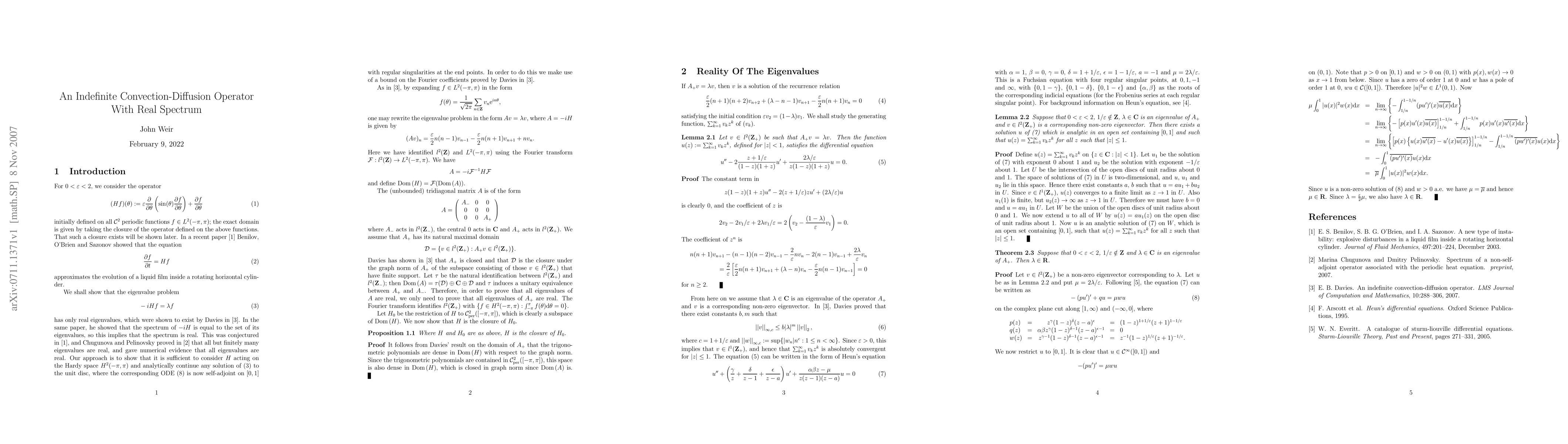 We confirm rigorously the conjecture, based on numerical and asymptotic evidence, that all the eigenvalues of a certain non-self-adjoint operator are real.
