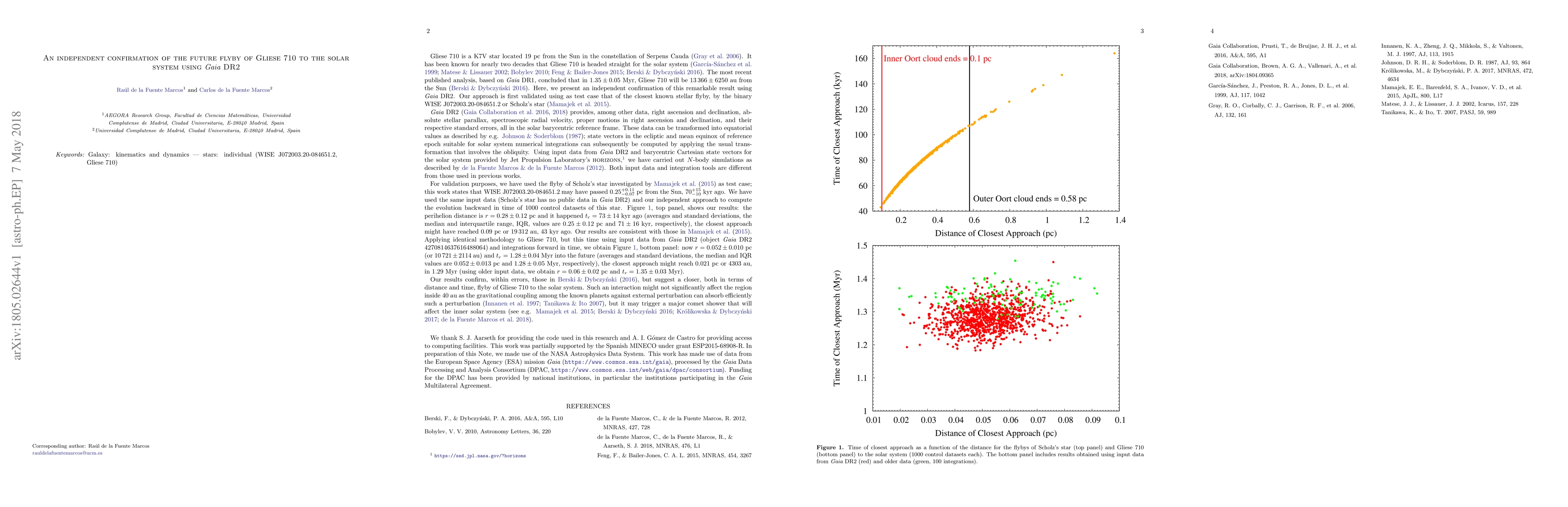 Gliese 710 is a K7V star located 19 pc from the Sun in the constellation of Serpens Cauda, which is headed straight for the solar system. Berski & Dybczynski (2016) used data from Gaia DR1 to show that this star will be 13366 AU from the Sun in 1.35 Myr from now. Here, we present an independent confirmation of this remarkable result using Gaia DR2. Our approach is first validated using as test case that of the closest known stellar flyby, by the binary WISE J072003.20-084651.2 or Scholz's star. Our results confirm, within errors, those in Berski & Dybczynski (2016), but suggest a somewhat closer, both in terms of distance and time, flyby of Gliese 710 to the solar system. Such an interaction might not significantly affect the region inside 40 au as the gravitational coupling among the known planets against external perturbation can absorb efficiently such a perturbation, but it may trigger a major comet shower that will affect the inner solar system.