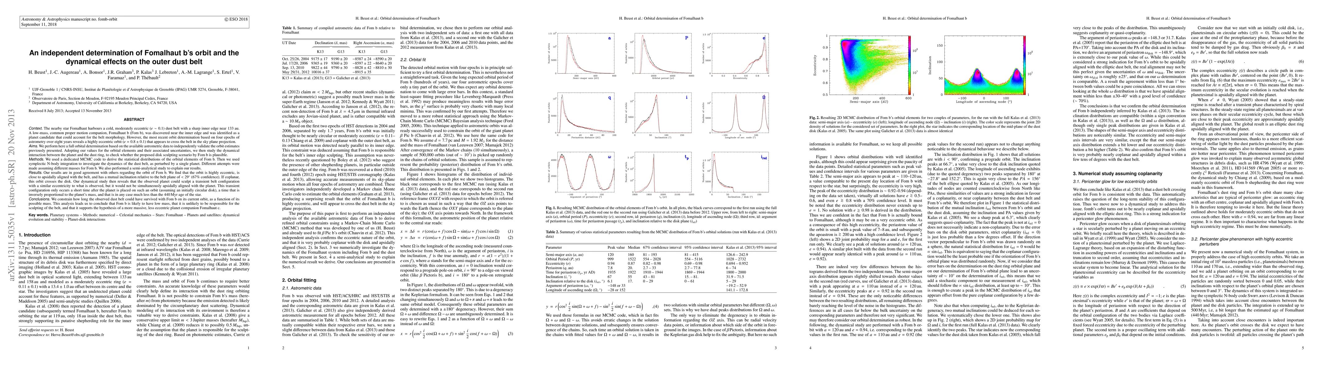 The nearby star Fomalhaut harbours a cold, moderately eccentric dust belt with a sharp inner edge near 133 au. A low-mass, common proper motion companion (Fom b), was discovered near the inner edge and was identified as a planet candidate that could account for the belt morphology. However, the most recent orbit determination based on four epochs of astrometry over eight years reveals a highly eccentric orbit that appears to cross the belt in the sky plane projection. We perform here a full orbital determination based on the available astrometric data to independently validate the orbit estimates previously presented. Adopting our values for the orbital elements and their associated uncertainties, we then study the dynamical interaction between the planet and the dust ring, to check whether the proposed disk sculpting scenario by Fom b is plausible. We used a dedicated MCMC code to derive the statistical distributions of the orbital elements of Fom b. Then we used symplectic N-body integration to investigate the dynamics of the dust belt, as perturbed by a single planet. Different attempts were made assuming different masses for Fom b. We also performed a semi-analytical study to explain our results. Our results are in good agreement with others regarding the orbit of Fom b. We find that the orbit is highly eccentric, is close to apsidally aligned with the belt, and has a moderate mutual inclination relative to the belt plane of. If coplanar, this orbit crosses the disk. Our dynamical study then reveals that the observed planet could sculpt a transient belt configuration with a similar eccentricity to what is observed, but it would not be simultaneously apsidally aligned with the planet. This transient configuration only occurs a short time after the planet is placed on such an orbit (assuming an initially circular disk), a time that is inversely proportional to the planet's mass, and that is in any case much less than the 440 Myr age of the star. We constrain how long the observed dust belt could have survived with Fom b on its current orbit, as a function of its possible mass. This analysis leads us to conclude that Fom b is likely to have low mass, that it is unlikely to be responsible for the sculpting of the belt, and that it supports the hypothesis of a more massive, less eccentric planet companion Fom c.