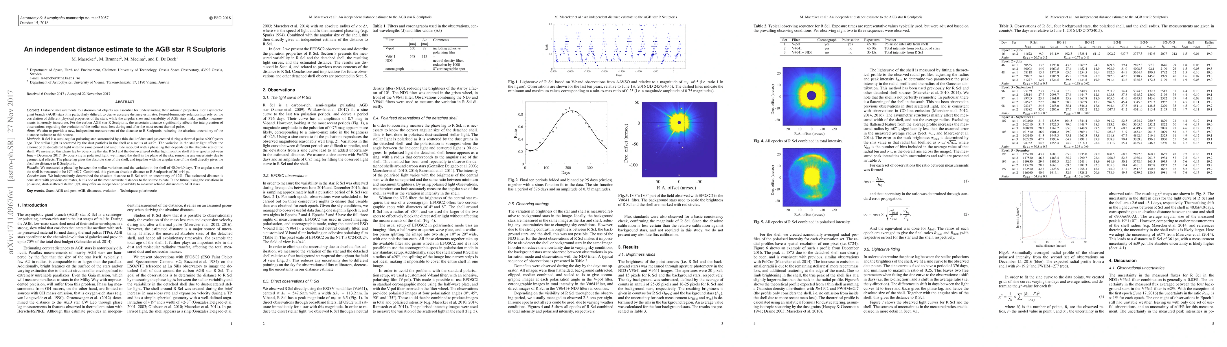 For the carbon AGB star R Sculptoris, the uncertain distance significantly affects the interpretation of observations regarding the evolution of the stellar mass loss during and after the most recent thermal pulse. We aim to provide a new, independent measurement of the distance to R Sculptoris, reducing the absolute uncertainty of the distance estimate to this source. R Scl is a semi-regular pulsating star, surrounded by a thin shell of dust and gas created during a thermal pulse approximately 2000 years ago. The stellar light is scattered by the dust particles in the shell at a radius of 19 arcsec. The variation in the stellar light affects the amount of dust-scattered light with the same period and amplitude ratio, but with a phase lag that depends on the absolute size of the shell. We measured this phase lag by observing the star R Scl and the dust-scattered stellar light from the shell at five epochs between June - December 2017. By observing in polarised light, we imaged the shell in the plane of the sky, removing any uncertainty due to geometrical effects. The phase lag gives the absolute size of the shell, and together with the angular size of the shell directly gives the absolute distance to R Sculptoris. We measured a phase lag between the stellar variations and the variation in the shell of 40.0 +/- 4.0 days. The angular size of the shell is measured to be 19.1 arcsec +/- 0.7 arcsec. Combined, this gives an absolute distance to R Sculptoris of 361 +/- 44 pc. We independently determined the absolute distance to R Scl with an uncertainty of 12%. The estimated distance is consistent with previous estimates, but is one of the most accurate distances to the source to date. In the future, using the variations in polarised, dust-scattered stellar light, may offer an independent possibility to measure reliable distances to AGB stars.