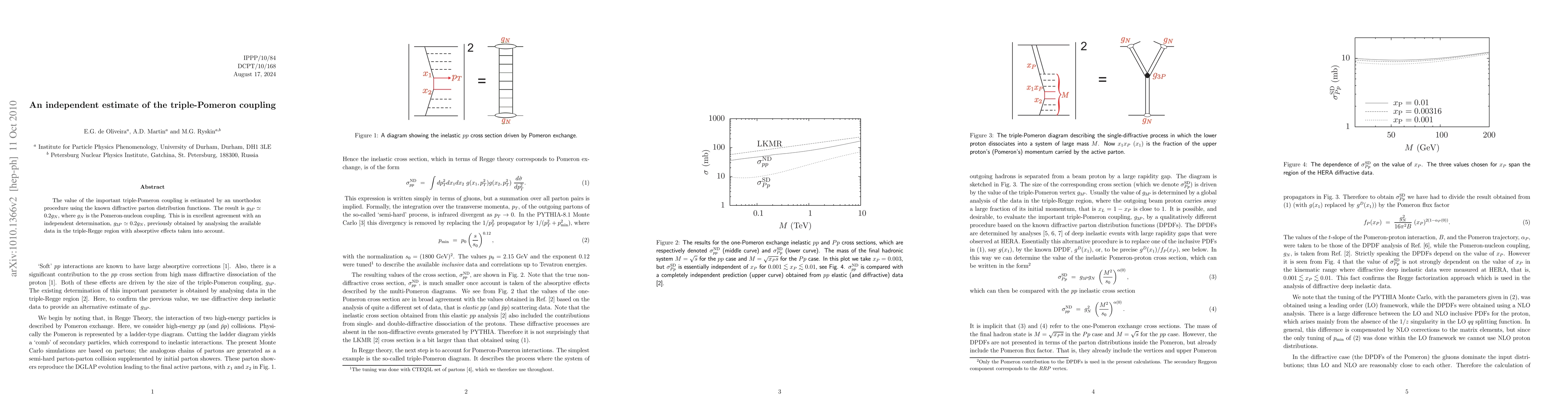 Researchers estimate the triple-Pomeron coupling to be approximately 0.2 times the Pomeron-nucleon coupling, in agreement with an independent determination.