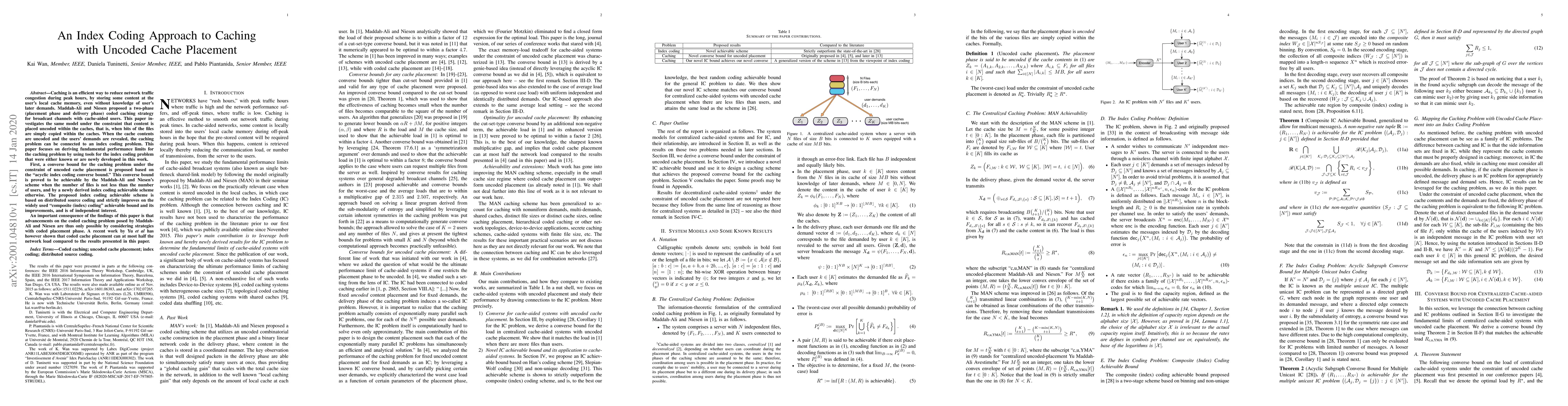 This paper explores a caching model where content is placed uncoded in caches, connecting it to index coding problems. It derives a converse bound for performance limits and proposes an achievable scheme based on distributed source coding, improving upon existing bounds. The findings suggest that coded caching strategies are necessary for further advancements.