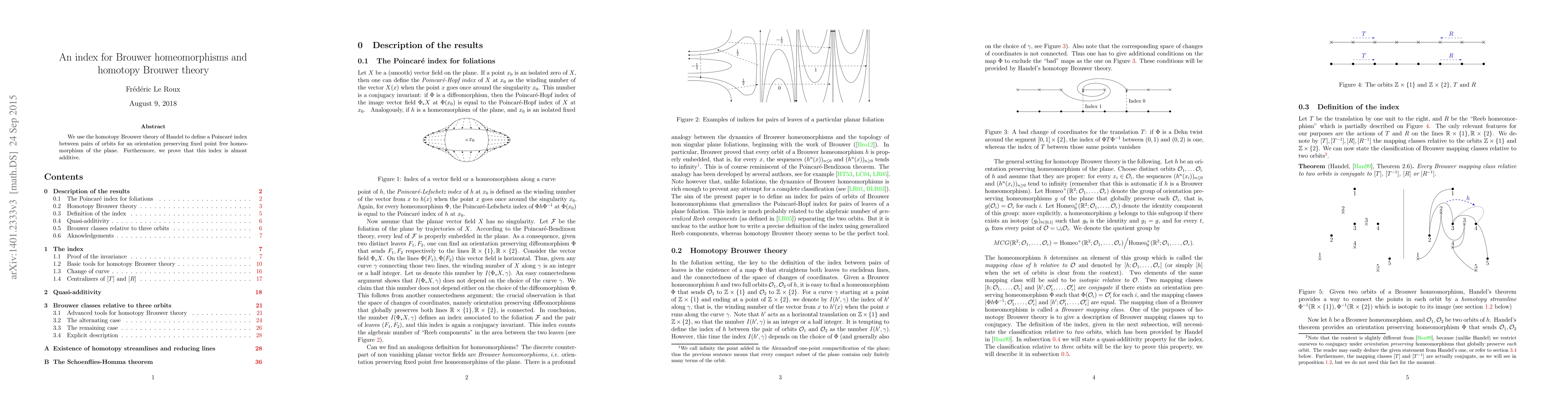 This paper defines a Poincaré index between orbits for Brouwer homeomorphisms using homotopy Brouwer theory and proves its almost additivity, contributing to the understanding of fixed point free homeomorphisms in the plane.