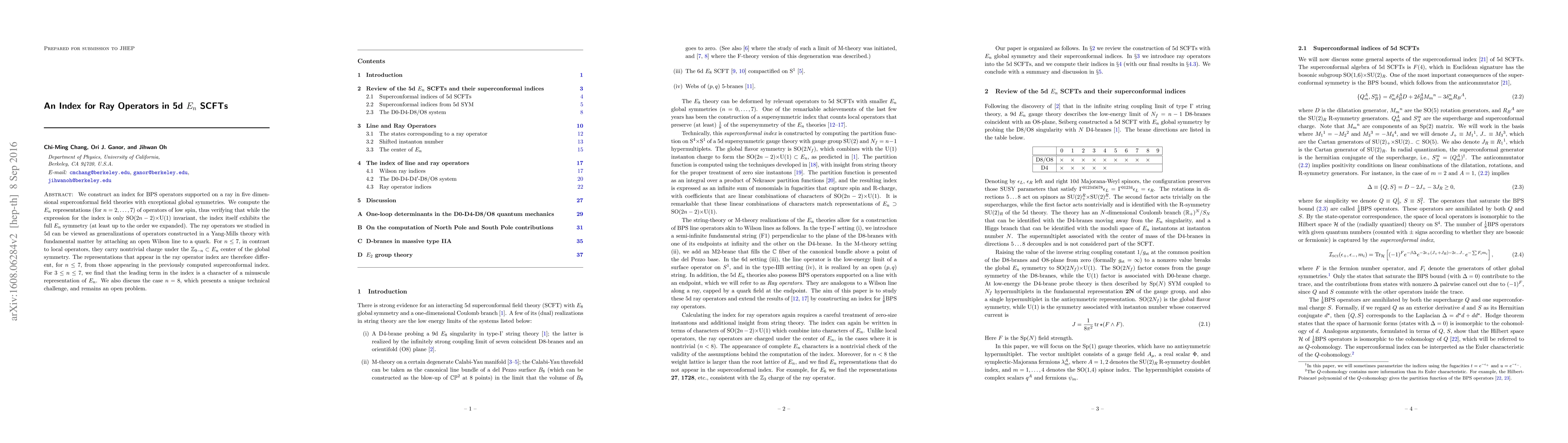 This paper constructs an index for BPS ray operators in 5d $E_n$ SCFTs, revealing that the index exhibits full $E_n$ symmetry despite the expression's invariance only under SO$(2n-2)\times$U(1). For $n\le 7$, these ray operators carry nontrivial charge under the $\mathbb{Z}_{9-n}$ center, differing from local operators' representations.