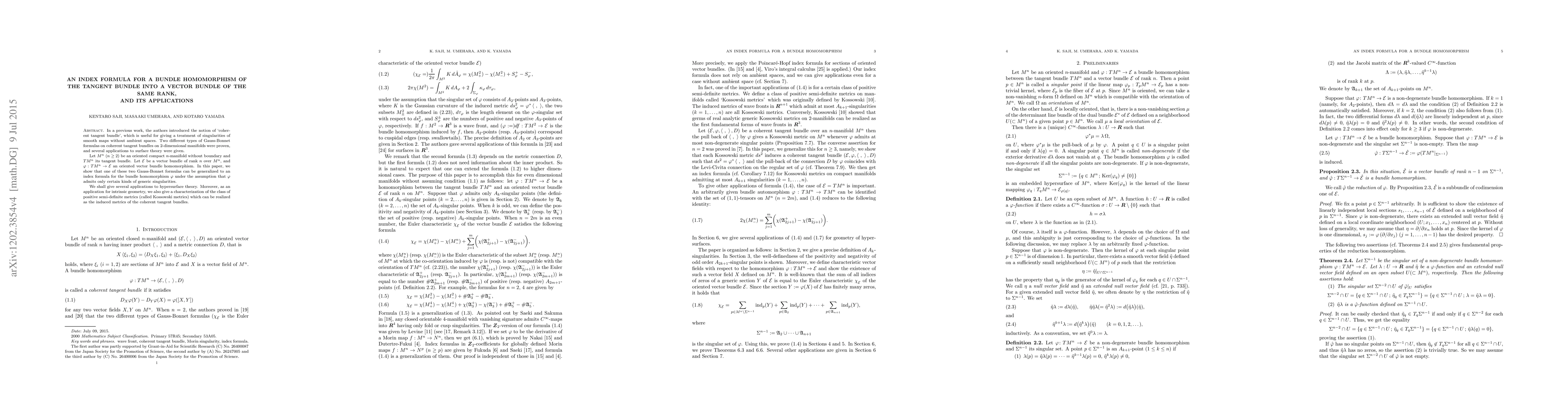 This paper generalizes a Gauss-Bonnet formula to an index formula for a bundle homomorphism from the tangent bundle to a vector bundle of the same rank, under the assumption of specific generic singularities. Applications include hypersurface theory and a characterization of positive semi-definite metrics realizable as induced metrics of coherent tangent bundles.