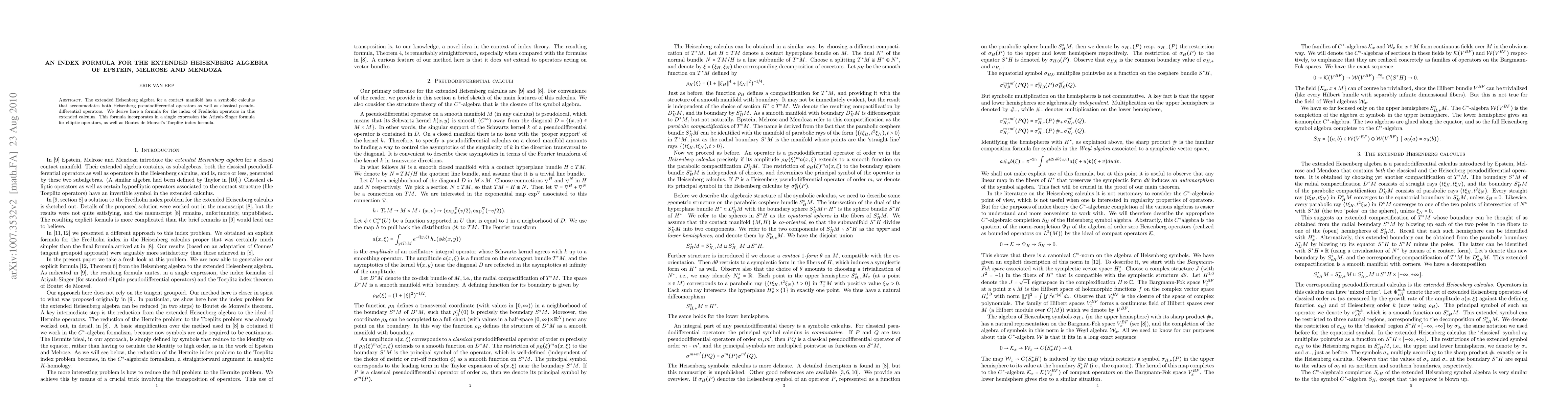 The extended Heisenberg algebra for a contact manifold has a symbolic calculus that accommodates both Heisenberg pseudodifferential operators as well as classical pseudodifferential operators. We derive here a formula for the index of Fredholm operators in this extended calculus. This formula incorporates in a single expression the Atiyah-Singer formula for elliptic operators, as well as Boutet de Monvel's Toeplitz index formula.