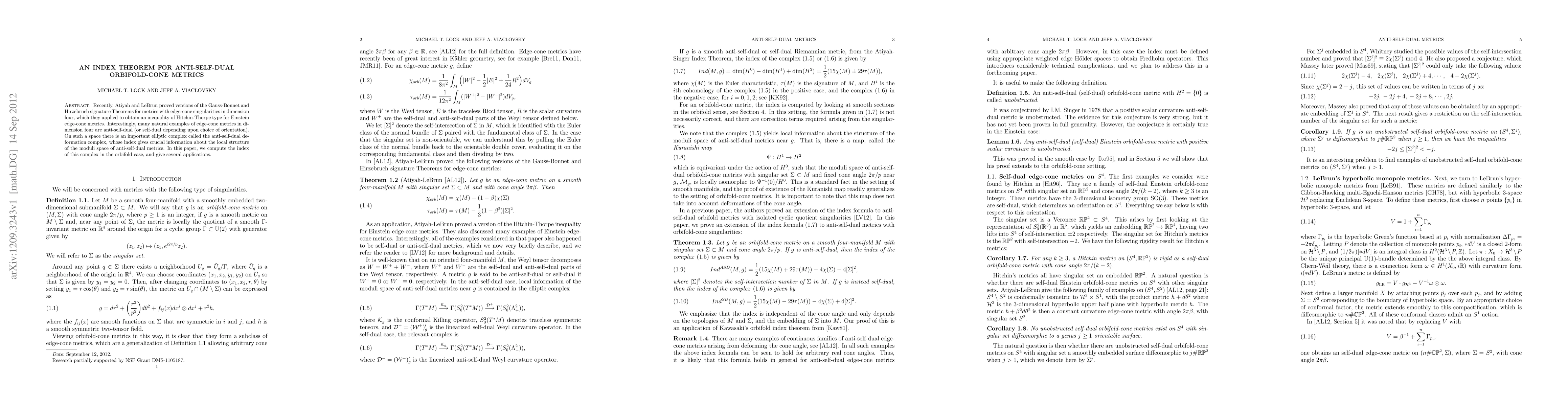 This paper computes the index of the anti-self-dual deformation complex for orbifold-cone metrics, extending prior work on edge-cone singularities to include anti-self-dual structures, and provides applications relevant to the study of moduli spaces of such metrics.