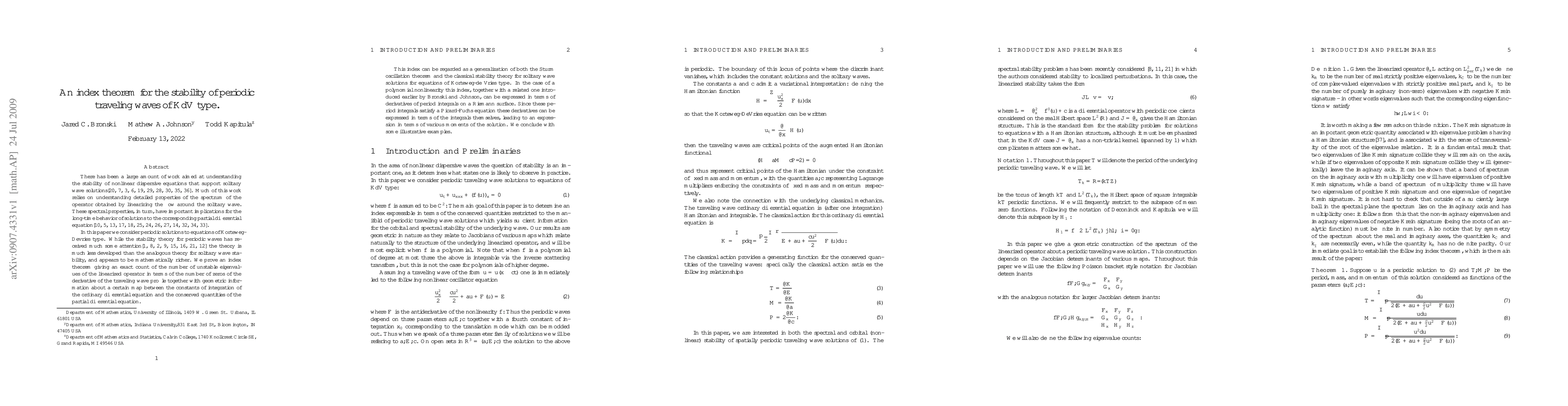 We consider periodic solutions to equations of Korteweg-Devries type. While the stability theory for periodic waves has received much some attention the theory is much less developed than the analogous theory for solitary wave stability, and appears to be mathematically richer. We prove an index theorem giving an exact count of the number of unstable eigenvalues of the linearized operator in terms of the number of zeros of the derivative of the traveling wave profile together with geometric information about a certain map between the constants of integration of the ordinary differential equation and the conserved quantities of the partial differential equation. This index can be regarded as a generalization of both the Sturm oscillation theorem and the classical stability theory for solitary wave solutions for equations of Korteweg-de Vries type. In the case of a polynomial nonlinearity this index, together with a related one introduced earlier by Bronski and Johnson, can be expressed in terms of derivatives of period integrals on a Riemann surface. Since these period integrals satisfy a Picard-Fuchs equation these derivatives can be expressed in terms of the integrals themselves, leading to an expression in terms of various moments of the solution. We conclude with some illustrative examples.