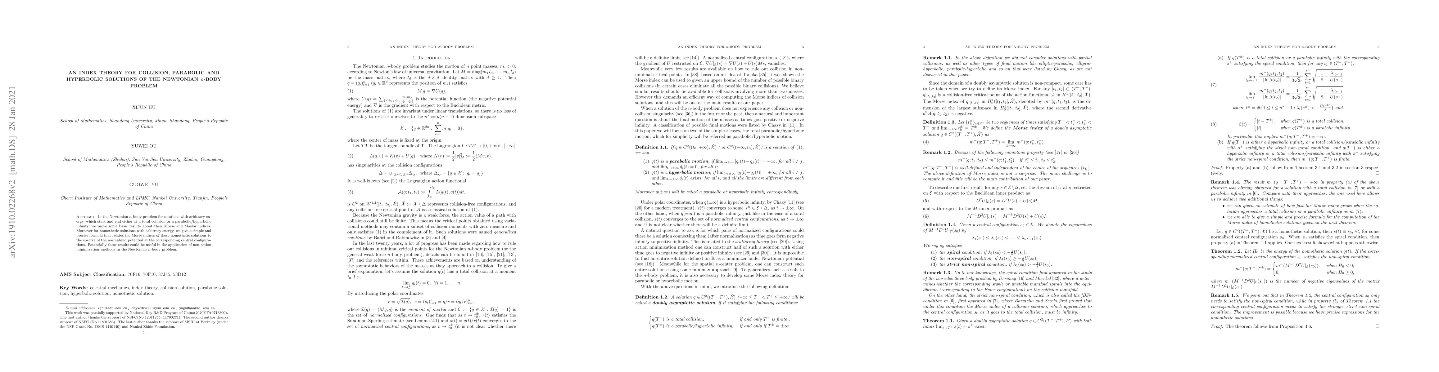 This paper establishes fundamental results on the Morse and Maslov indices for Newtonian $n$-body problem solutions that end in total collisions or at parabolic/hyperbolic infinity. It also provides a precise formula relating Morse indices of homothetic solutions to the spectra of normalized potentials at corresponding central configurations.