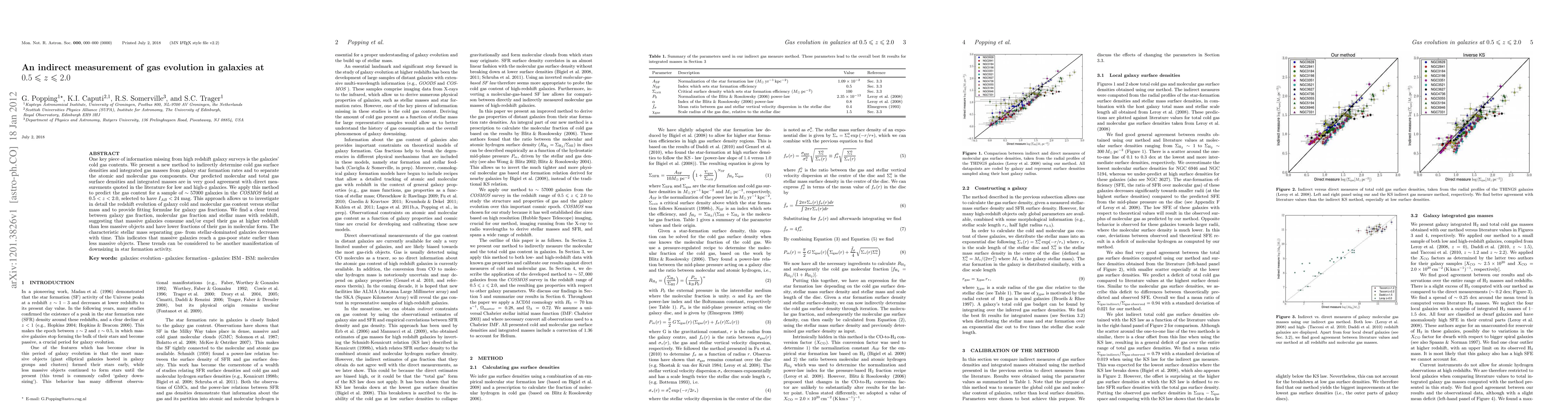 This paper presents a new method to indirectly measure cold gas contents in galaxies at redshifts $0.5 \leq z \leq 2.0$ using star formation rates, revealing trends in gas evolution with stellar mass and redshift. The findings suggest that massive galaxies become gas-poor earlier than less massive ones, indicating a downsizing effect in star formation.