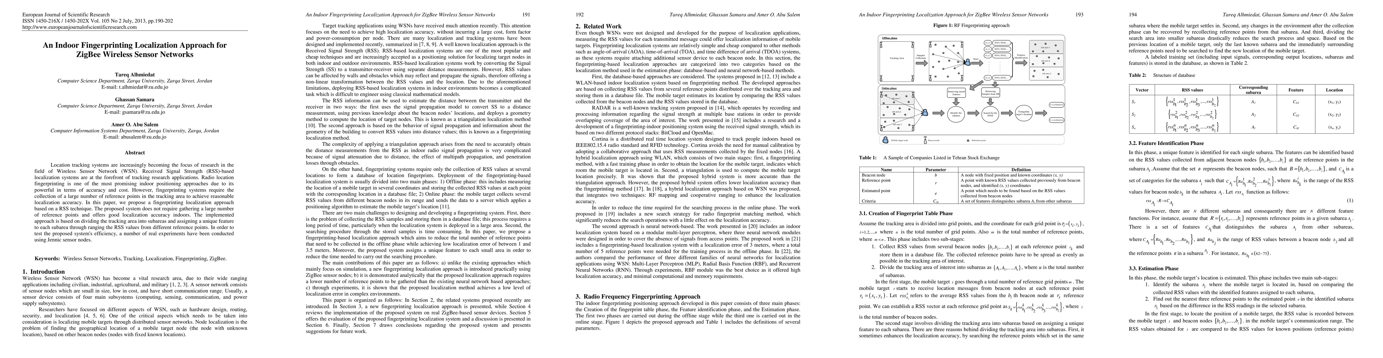 This paper proposes an indoor fingerprinting localization approach for ZigBee Wireless Sensor Networks using Received Signal Strength (RSS) that minimizes the need for extensive reference points while maintaining high accuracy. Experiments with Jennic sensor nodes demonstrate the effectiveness of the proposed method, which divides the tracking area into subareas and assigns unique features based on RSS values.