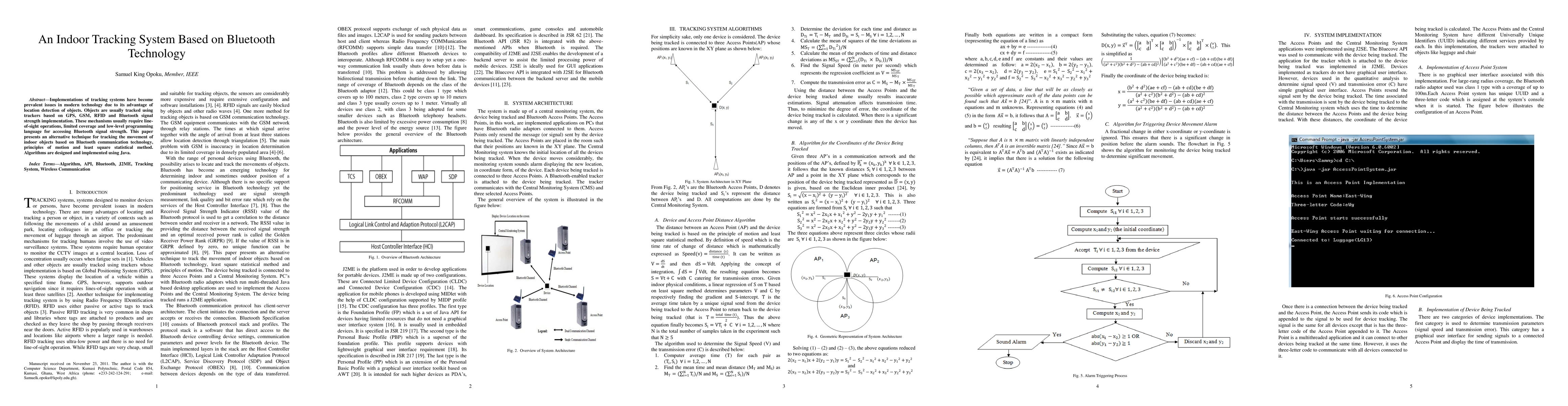This paper proposes an indoor tracking system utilizing Bluetooth technology, leveraging principles of motion and least square statistical methods to overcome limitations of GPS, GSM, RFID, and traditional Bluetooth tracking. Algorithms are developed and implemented in Java for effective object location detection within indoor environments.