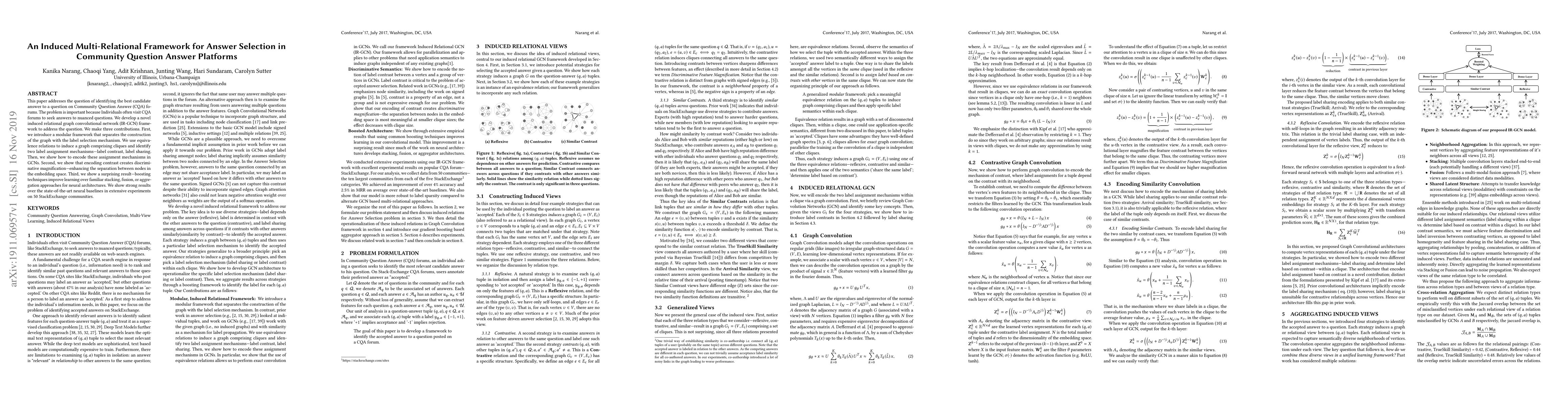 This paper addresses the question of identifying the best candidate answer to a question on Community Question Answer (CQA) forums. The problem is important because Individuals often visit CQA forums to seek answers to nuanced questions. We develop a novel induced relational graph convolutional network (IR-GCN) framework to address the question. We make three contributions. First, we introduce a modular framework that separates the construction of the graph with the label selection mechanism. We use equivalence relations to induce a graph comprising cliques and identify two label assignment mechanisms---label contrast, label sharing. Then, we show how to encode these assignment mechanisms in GCNs. Second, we show that encoding contrast creates discriminative magnification---enhancing the separation between nodes in the embedding space. Third, we show a surprising result---boosting techniques improve learning over familiar stacking, fusion, or aggregation approaches for neural architectures. We show strong results over the state-of-the-art neural baselines in extensive experiments on 50 StackExchange communities.
