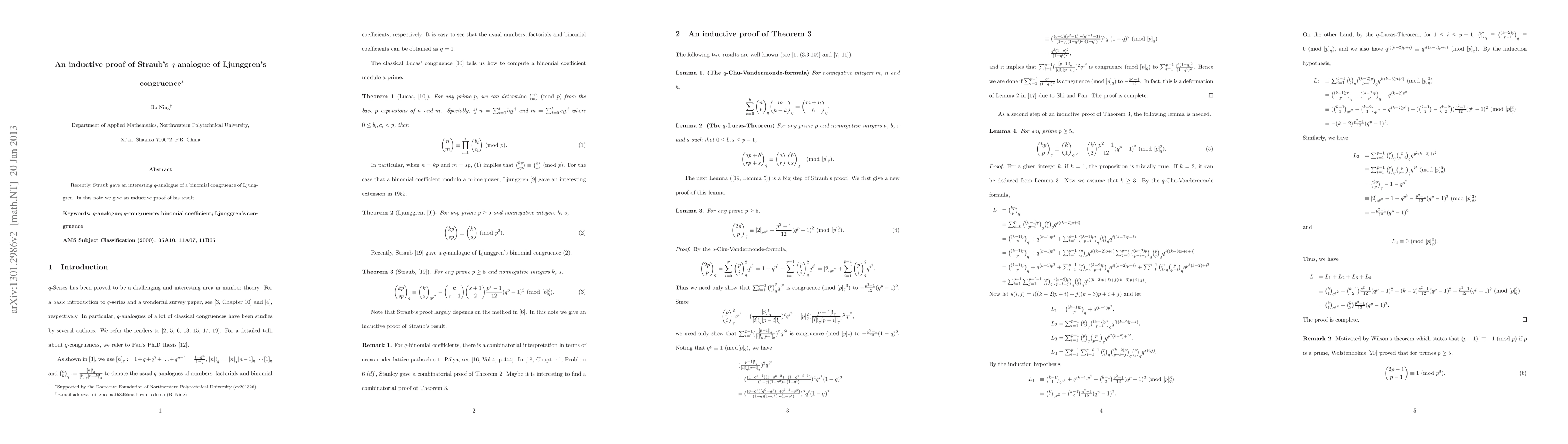 Summary: This paper presents an inductive proof for Straub's $q$-analogue of Ljunggren's binomial congruence, expanding on the original formulation and providing a more accessible demonstration of the result.