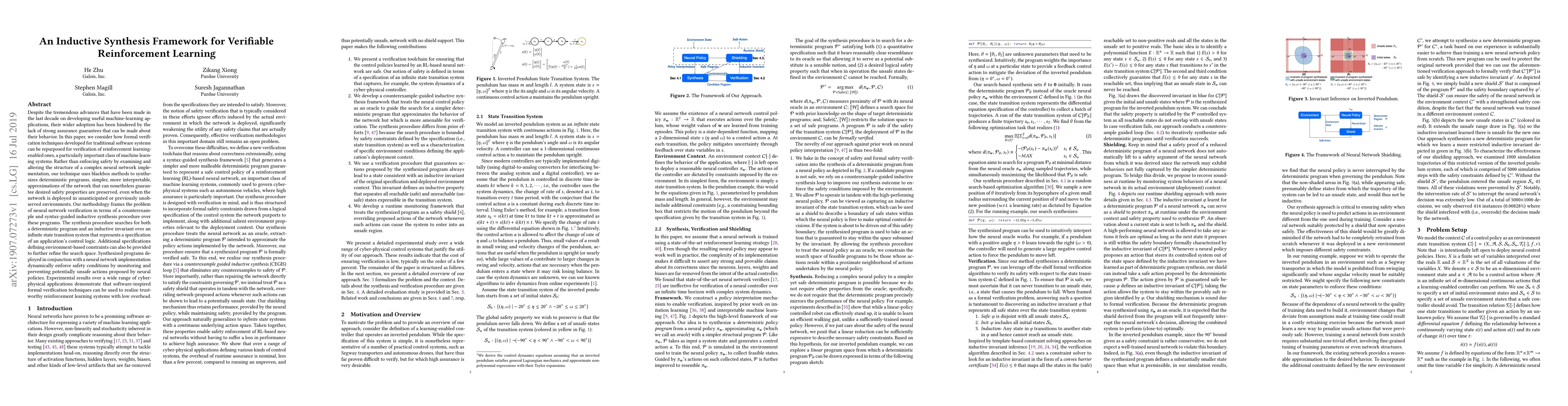 This paper proposes an inductive synthesis framework to verify reinforcement learning systems by generating simpler, interpretable deterministic programs that guarantee safety properties. The method uses blackbox techniques to synthesize these programs, which dynamically enforce safety conditions when deployed alongside neural networks.