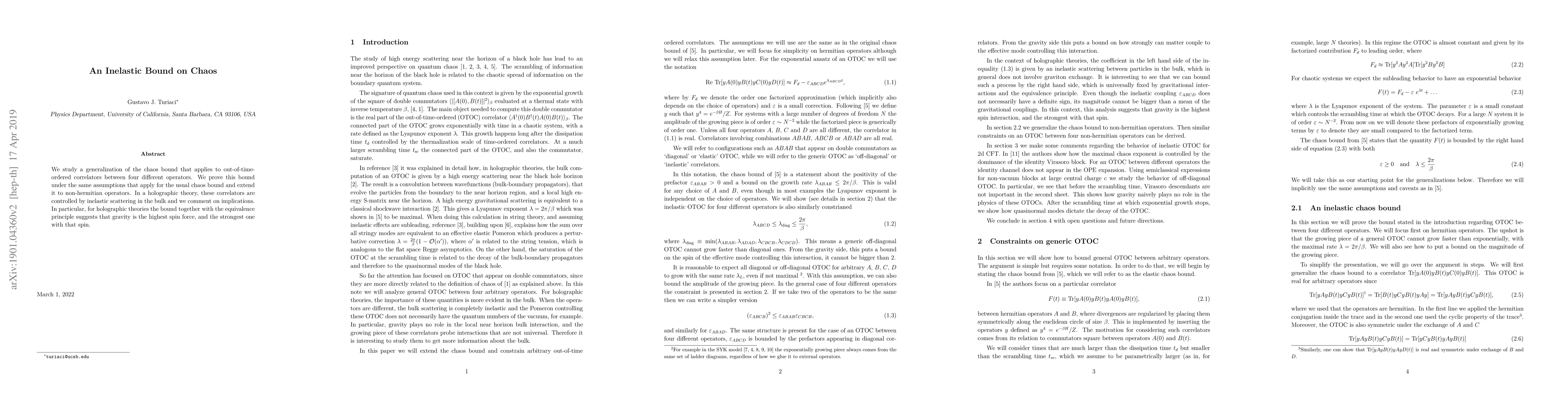 We study a generalization of the chaos bound that applies to out-of-time-ordered correlators between four different operators. We prove this bound under the same assumptions that apply for the usual chaos bound and extend it to non-hermitian operators. In a holographic theory, these correlators are controlled by inelastic scattering in the bulk and we comment on implications. In particular, for holographic theories the bound together with the equivalence principle suggests that gravity is the highest spin force, and the strongest one with that spin.