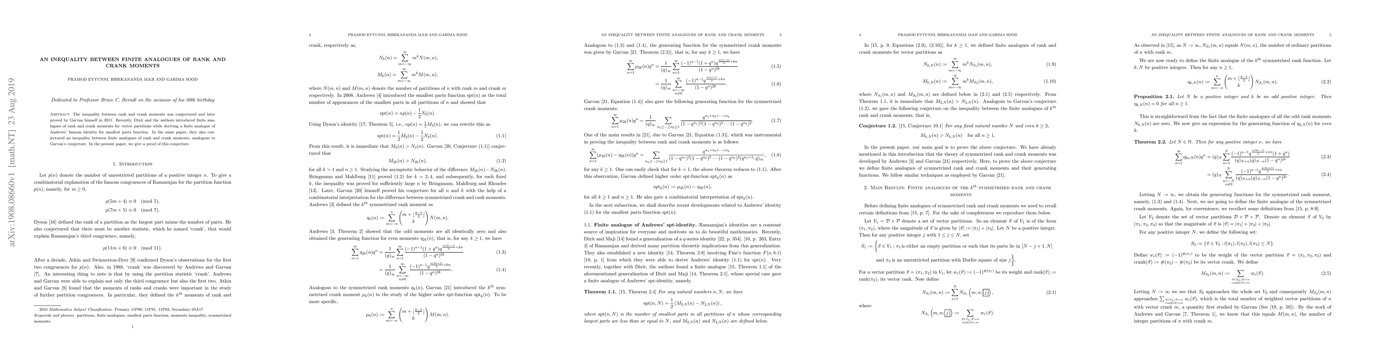 This paper presents a proof for a conjectured inequality between finite analogues of rank and crank moments for vector partitions, initially proposed by Dixit and the authors, building upon Garvan's 2011 work.