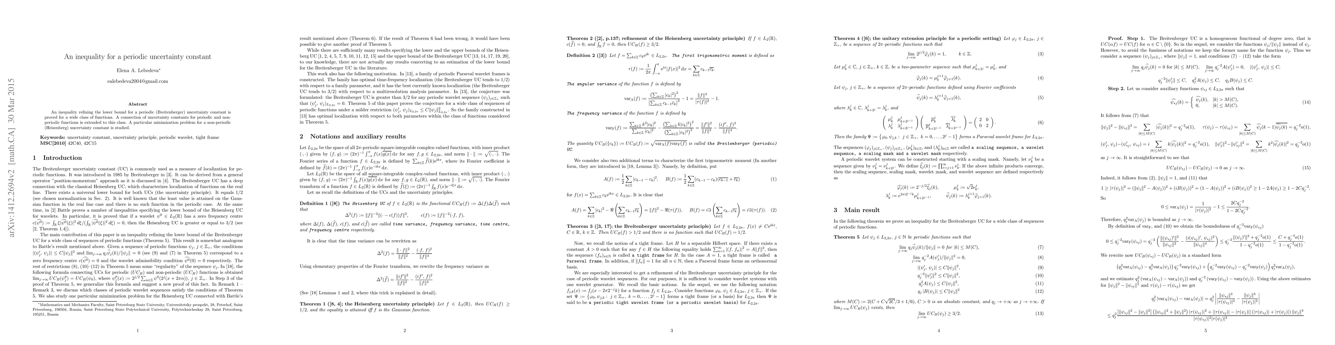 This paper presents an improved lower bound inequality for a periodic uncertainty constant, applicable to a broad function class. It also links periodic and non-periodic uncertainty constants and investigates a minimization problem for the non-periodic Heisenberg uncertainty constant.