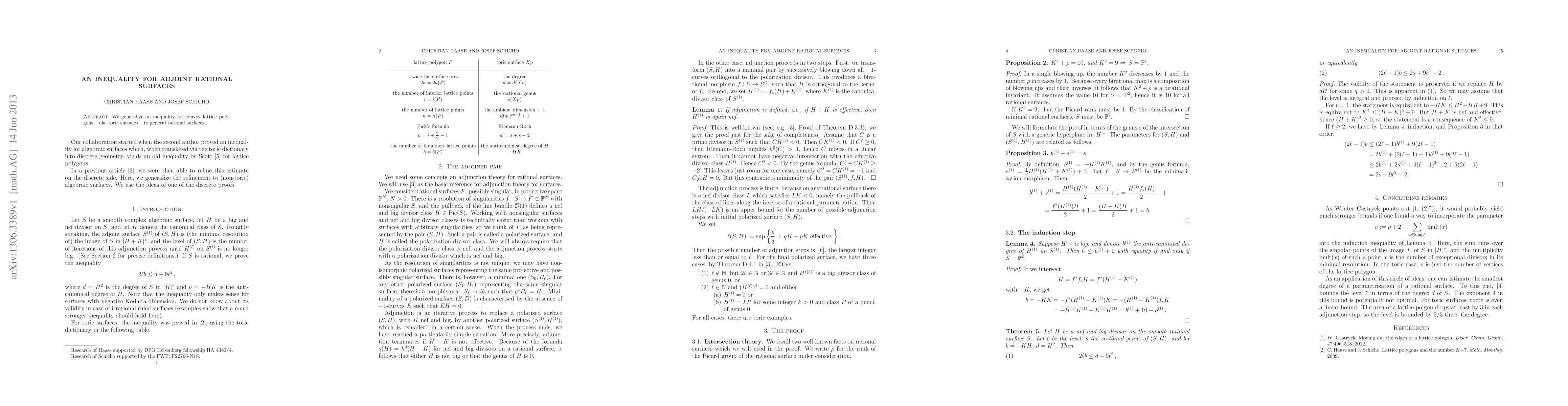 Summary: This paper generalizes an inequality initially established for convex lattice polygons (toric surfaces) to apply to general rational surfaces, providing a broader mathematical framework for understanding these geometric objects.