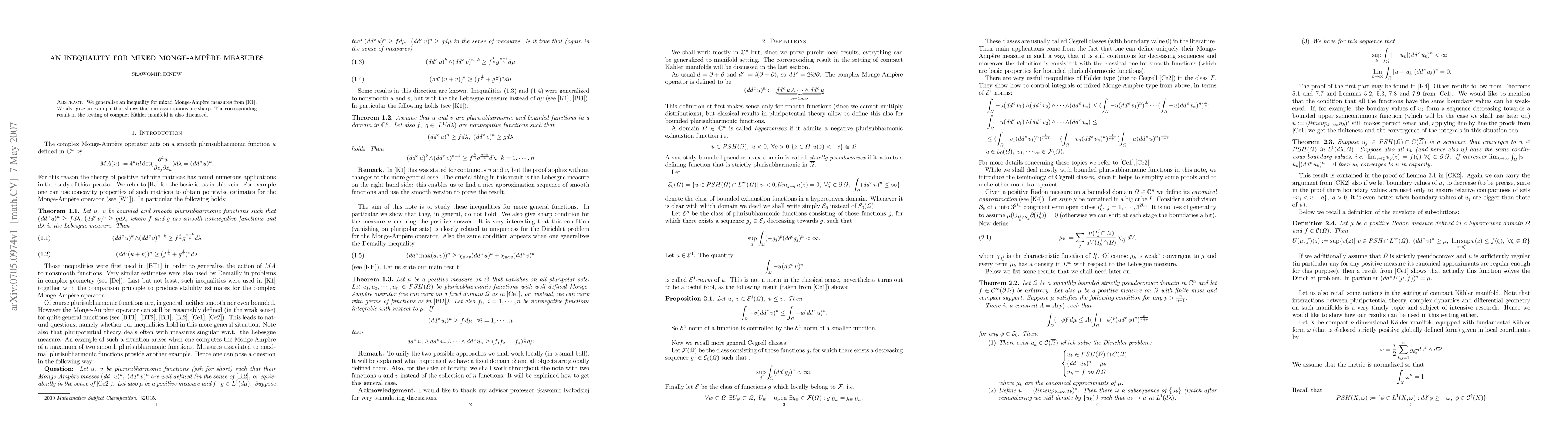 This paper generalizes an inequality for mixed Monge-Ampère measures and provides an example demonstrating the sharpness of its assumptions. Additionally, it explores the corresponding result in the context of compact Kähler manifolds.