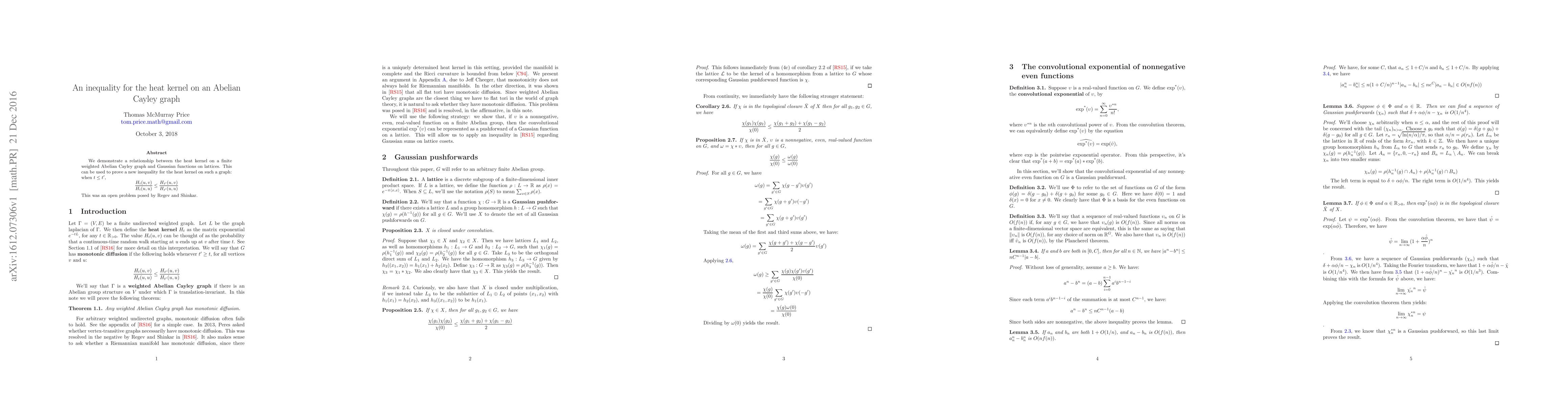 Researchers prove a new inequality for heat kernels on Abelian Cayley graphs, relating them to Gaussian functions on lattices, resolving an open problem posed by Regev and Shinkar.