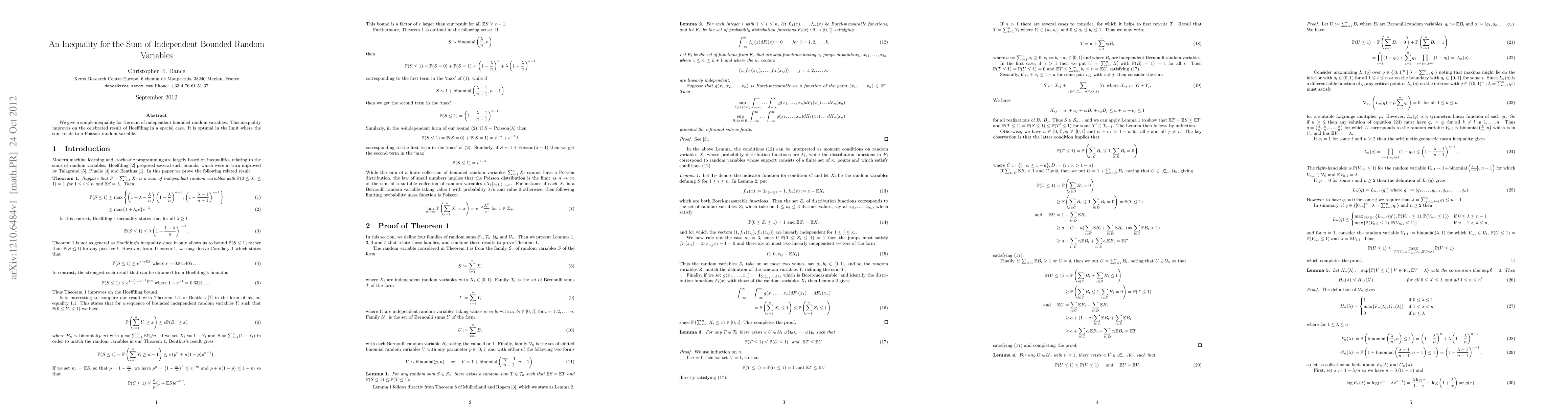 Summary: This paper presents a refined inequality for the sum of independent bounded random variables, surpassing Hoeffding's classic result in a specific case and achieving optimality when the sum approximates a Poisson distribution.