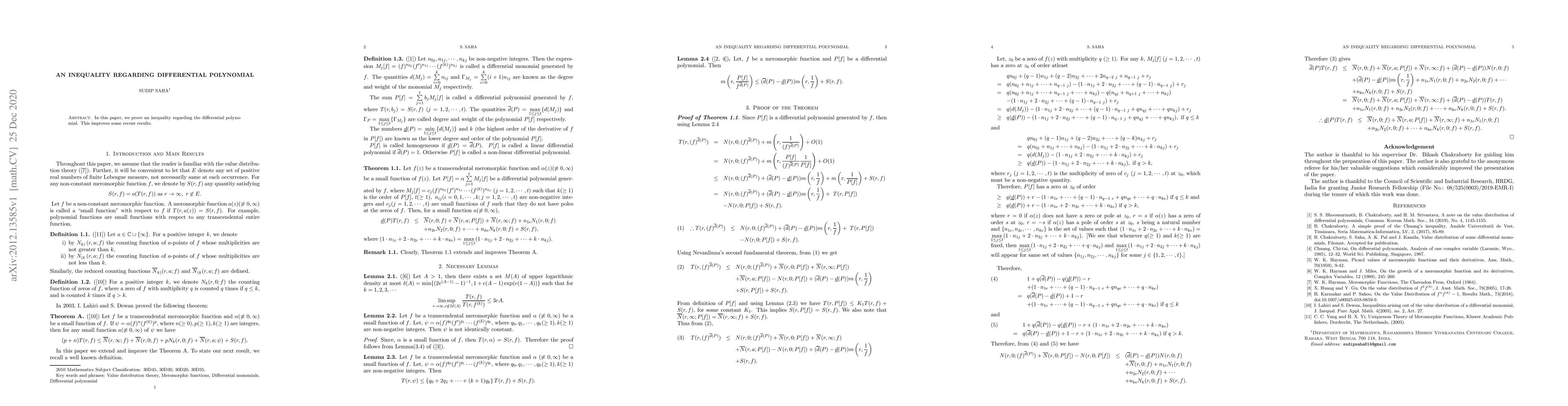 In this paper, we prove an inequality regarding the differential polynomial. This improves some recent results.