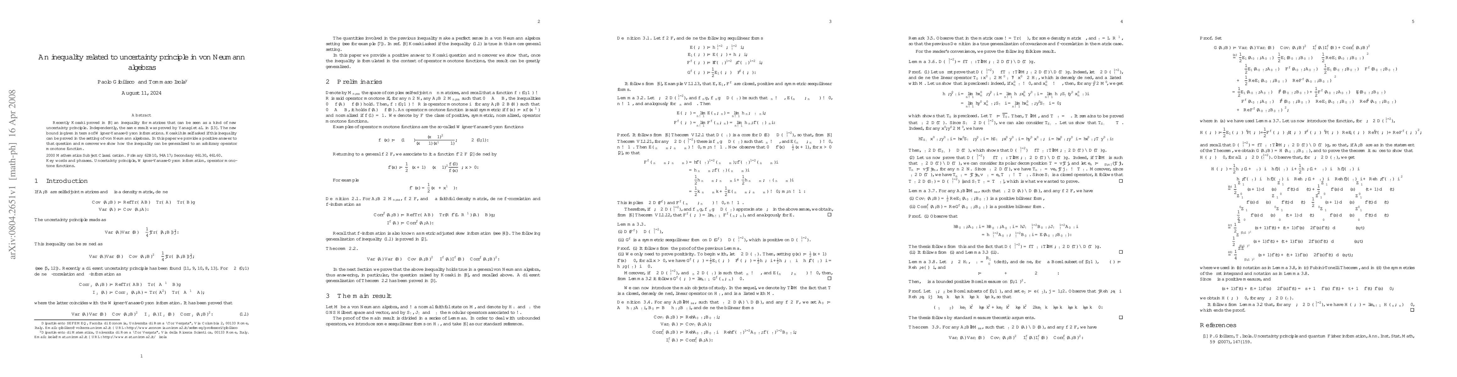 Recently Kosaki proved an inequality for matrices that can be seen as a kind of new uncertainty principle. Independently, the same result was proved by Yanagi, Furuichi and Kuriyama. The new bound is given in terms of Wigner-Yanase-Dyson informations. Kosaki himself asked if this inequality can be proved in the setting of von Neumann algebras. In this paper we provide a positive answer to that question and moreover we show how the inequality can be generalized to an arbitrary operator monotone function.