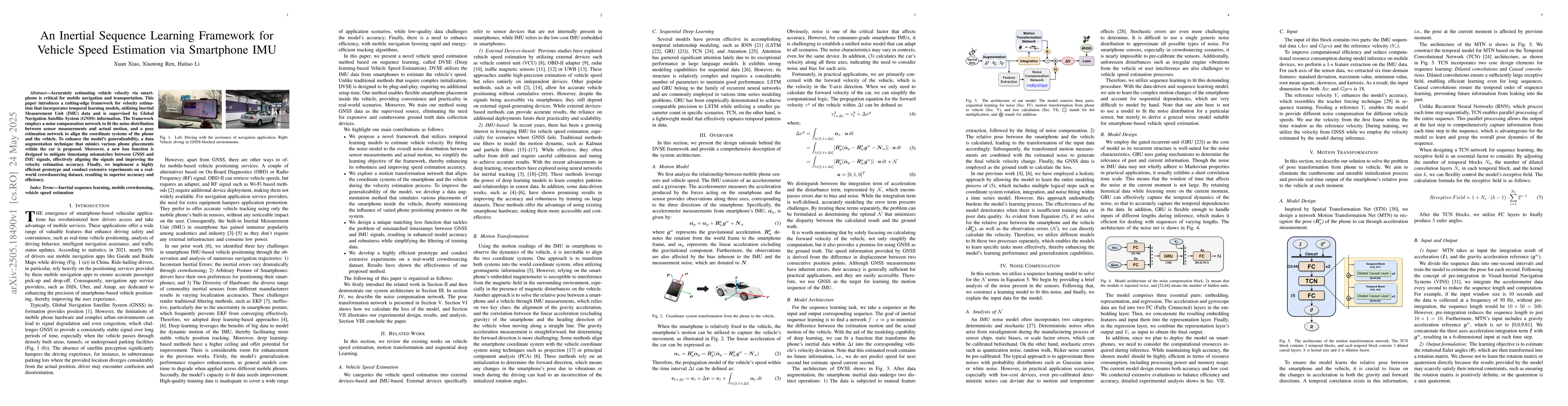 Accurately estimating vehicle velocity via smartphone is critical for mobile navigation and transportation. This paper introduces a cutting-edge framework for velocity estimation that incorporates temporal learning models, utilizing Inertial Measurement Unit (IMU) data and is supervised by Global Navigation Satellite System (GNSS) information. The framework employs a noise compensation network to fit the noise distribution between sensor measurements and actual motion, and a pose estimation network to align the coordinate systems of the phone and the vehicle. To enhance the model's generalizability, a data augmentation technique that mimics various phone placements within the car is proposed. Moreover, a new loss function is designed to mitigate timestamp mismatches between GNSS and IMU signals, effectively aligning the signals and improving the velocity estimation accuracy. Finally, we implement a highly efficient prototype and conduct extensive experiments on a real-world crowdsourcing dataset, resulting in superior accuracy and efficiency.